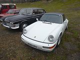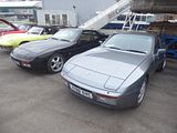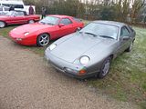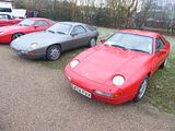 There were a number of the larger 928 model here, too. The first V8 engined Porsche, it was originally conceived to replace the 911, though as we all know, that did not happen, with the two complementing each other in the range during the 18 year life of the 928. By the late 1960s, Porsche had changed significantly as a company, and executives including owner Ferdinand Porsche were toying with the idea of adding a luxury touring car to the line-up. Managing Director Ernst Fuhrmann was also pressuring Ferdinand to approve development of the new model in light of concerns that the current flagship model at the time, the 911, was quickly reaching the limits of its potential. Slumping sales of the 911 seemed to confirm that the model was approaching the end of its economic life cycle. Fuhrmann envisioned the new range-topping model as being the best possible combination of a sports coupe and a luxury sedan, something well equipped and comfortable enough to be easily driven over long distances that also had the power, poise and handling prowess necessary to be driven like a sports car. This set it apart from the 911, which was intended to be an out-and-out sports car. Ordered by Ferdinand Porsche to come up with a production-feasible concept for his new model, Fuhrmann initiated a design study in 1971, eventually taking from the process the final specification for the 928. Several drivetrain layouts were considered during early development, including rear and mid-engined designs, but most were dismissed because of technical and/or legislative difficulties. Having the engine, transmission, catalytic converter(s) and exhaust all cramped into a small rear engine bay made emission and noise control more difficult, something Porsche was already facing problems with on the 911 and wanted to avoid. After deciding that the mid-engine layout didn’t allow enough room in the passenger compartment, a front engine/rear wheel drive layout was chosen. Porsche also may have feared that the U.S. government would soon ban the sale of rear-engined cars in response to the consumer concern over safety problems with the rear-engined Chevrolet Corvair. Porsche engineers wanted a large-displacement engine to power the 928, and prototype units were built with a 5-litre V8 producing close to 300 hp. Ferdinand Piëch wanted this car to use a 4.6-litre V10 based upon Audi’s five-cylinder engine. Several members of the Porsche board objected, chiefly because they wished for Porsche AG to maintain some separation from Volkswagen. The first two running prototypes of Porsche’s M28 V8 used one four-barrel carburettor, but this was just for initial testing. The cars were sold with the planned Bosch K-Jetronic fuel injection system. When increasing concern within the company over the pricing and availability of fuel during the oil crisis of the 1970s became an issue of contention, smaller engines were considered in the interest of fuel economy. A push began for the development of a 3.3 litre 180 hp powerplant they had drawn up designs for, but company engineers balked at this suggestion. Both sides finally settled on a 4.5 litre SOHC per bank 16-valve V8 producing 240 PS which they considered to have an acceptable compromise of performance and fuel economy. The finished car debuted at the 1977 Geneva Motor Show, going on sale later that year. Although it won early acclaim for its comfort and power, sales were slow. Base prices were much higher than that of the 911 model and the 928’s front-engined, water-cooled design put off many Porsche purists, not least because the design marked a major change in direction for Porsche started with the introduction of the Porsche 924 in 1976 which purists found hard to accept. Porsche utilised a transaxle in the 928 to help achieve 50/50 front/rear weight distribution, aiding the car’s balance. Although it weighed more than the difficult-to-handle 911, its more neutral weight balance and higher power output gave it similar performance on the track. The 928 was regarded as the more relaxing car to drive at the time. It came with either a five-speed dog leg manual transmission, or a Mercedes-Benz-derived automatic transmission, originally with three speeds, with four-speed from 1983 in North America and 1984 in other markets. More than 80% had the automatic transmission. Exact percentage of manual gearbox cars for entire production run is not known but it is believed to be between 15 and 20%. The body, styled by Wolfgang Möbius under guidance of Anatole Lapine, was mainly galvanised steel, but the doors, front fenders, and hood were aluminium in order to make the car more lightweight. It had a substantial luggage area accessed via a large hatchback. The new polyurethane elastic bumpers were integrated into the nose and tail and covered in body-coloured plastic; an unusual feature for the time that aided the car visually and reduced its drag. Porsche opted not to offer a convertible variant but several aftermarket modifiers offered convertible conversions, most notably Carelli, based in Orange County, CA. The Carelli conversions were sold as complete cars, with the conversion doubling the price of the car. A reported 12 units were made. The 928 qualified as a 2+2, having two small seats in the rear. Both rear seats could be folded down to enlarge the luggage area, and both the front and rear seats had sun visors for occupants. The rear seats are small (due to the prominent transmission hump) and have very little leg room; they are only suitable for adults on very short trips or children. The 928 was also the first vehicle in which the instrument cluster moved along with the adjustable steering wheel in order to maintain maximum instrument visibility. The 928 included several other innovations such as the “Weissach Axle”, a simple rear-wheel steering system that provides passive rear-wheel steering to increase stability while braking during a turn, and an unsleeved, silicon alloy
