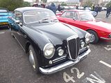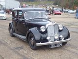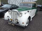 In February 1948, Rover announced two new models, the Sixty and the Seventy-Five. Known as the P3 series, these were respectively 1.6 and 2.0-litre executive cars which would be produced until late 1949 when they were superceded by the completely different P4 models. They included a new engine that had been in preparation since the late 1930s with overhead inlet and side exhaust valves. It was made in two versions for the car, the Rover 60 had a four-cylinder unit of 1595 cc and the Rover 75 had a six-cylinder version of 2103 cc. The gearbox and traditional Rover freewheel were kept unchanged from the previous model. To go with the engine a new car was prepared. Although the body was similar in styling to the pre war P2 Rover 12 and 16, many of the body panels were in fact new but the wings and bonnet from the 12 were carried over. The car was 0.5 inch wider outside than the 16 but by making better use of space this translated to 2.5 inches inside. It was 4.5 inches shorter in the wheelbase. Also new, and a first for a Rover, was independent front suspension but the brakes remained a hydraulic/mechanical hybrid system. Rather than having a complete chassis, the new frame, which was a box section, was stopped short of the rear axle and the rear semi-elliptic springs were attached to the body. This allowed the rear axle travel to be increased and an improved ride resulted. Two body styles were available, a 6-light saloon and 4-light sports saloon. The 6-light saloon had a rear quarter window (sometimes referred to a 6-window saloon) while the 4-light sports saloon had the lack of the rear quarter window (sometimes referred to a 4-window saloon). The cars were expensive at £1080 for the Rover 60 and £1106 for the Rover 75, and with early post-war production problems and material shortages it was never intended that the cars would be produced in large numbers. Eventually, 1274 of the 60 and 7837 of the 75 models were made before the car was replaced by the all-new Rover P4 model 75. The car seen here is a 75.