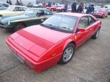 Produced alongside the 308/328 GTB and GTS models was the Mondial, and there were a couple of examples of the car on show. Produced by Ferrari from 1980 through 1993, it replaced the 208/308 GT4. The “Mondial” name came from Ferrari’s history — the 500 Mondial race car of the early 1950s. Despite its predecessor being Bertone styled, the Mondial saw Ferrari return to Pininfarina for styling. Sold as a mid-sized coupe and, eventually a cabriolet, it was conceived as a ‘usable’ model, offering the practicality of four seats and the performance of a Ferrari. The car had a slightly higher roofline than its stablemates, with a single long door either side, offering easy access and good interior space, reasonable rear legroom while all-round visibility was excellent. The cabriolets also hold the distinction of being the only production automobile in history that has four seats, is rear mid-engined, and is a full convertible. The car body was not built as a monocoque in the same way as a conventional car. The steel outer body produced by the famous Italian coachbuilder Carrozzeria Scaglietti, in nearby Modena, was built over a lightweight steel box-section space frame. The engine cover and rear luggage compartment lids are in light alloy. The seats and interior were trimmed in Connolly hide, contrasting with the body colour. Most cars were painted rosso red, but some were black or silver, and a few were dark blue. The Mondial was the first Ferrari car where the entire engine/gearbox/rear suspension assembly is on a detachable steel subframe. This design made engine removal for a major rebuild or cylinder head removal much easier than it was on previous models. Unusually, the handbrake is situated between the driver’s seat and the inner sill. Once the handbrake is set it drops down so as, not to impede egress and ingress. Instead of the conventional “H” shift pattern, the gearbox has 1st gear situated in a “dog leg” to the left and back, behind reverse. This pattern, otherwise known as a “reverse h-gate”, allows quicker gear shifts between 2nd and 3rd gear, and also between 4th and 5th. The Mondial underwent many updates throughout production. There were four distinct iterations (8, QV, 3.2, and t), with the latter 3 having two variations each. (coupe and cabriolet). The first car was introduced as the Mondial 8 at the 1980 Geneva Auto Salon. It was the first Ferrari to depart from the company’s simple 3-digit naming scheme, and some reviews found it relatively mild, compared to other Ferraris, regarding performance, drawing criticism from some in the motoring press. It used a mid/rear-mounted Bosch K-Jetronic fuel injection V8, shared with the 308 GTBi/GTSi, mounted transversely. The engine used in the 1973 Dino 308 GT4. The K-Jetronic system is mechanical, with a high-pressure pump which streams fuel continuously to the injectors; it does not have a computer, just a few relays to handle the cold start sequence etc. The chassis was also based on the 308 GT4, but with a 3.9 inch longer wheelbase at 104.3 in. The suspension was the classic layout of unequal-length double wishbones and Koni dampers all around. Today, the Mondial 8 is considered one of the marque’s most “practical” vehicles, due to its 214 hp, proven drivetrain, four seats, and relatively low cost of maintenance (major services can be performed without removing the entire engine/transmission subframe). 703 examples were made. The first Mondial engine, although a DOHC design, used just two valves per cylinder. The 1982 Quattrovalvole or QV introduced a new four-valve head; the combustion chamber design purportedly based on the early eighties Formula 1 engine. Again, the engine was shared with the contemporary 308 GTB/GTS QV, and produced a much more respectable 240 hp. Appearance was largely as per the Mondial 8, although with red engine heads and prominent “quattrovalvole” script at the rear. 1,145 coupés built between 1982 and 1985. A new Cabriolet body style added for 1983. Body styling remained the same as the coupé variant, with the roof maintaining the ‘buttress’ design of the roof, though the Cabriolet required the rear seats to be mounted closer together laterally. The introduction of the Cabriolet saw the popularity of the Mondial rise, particularly in the American market, where the convertible body style was highly desirable. The Cabriolet has the added distinction of being the only four-seat, mid-rear engine, convertible automobile ever manufactured in regular production. 629 units were produced between 1983 and 1985, making this the rarest version of the Mondial. Like the Ferrari 328, the Mondial’s engine grew in both bore and stroke to 3,185 cc in 1985. Output was now 270 PS. The Mondial 3.2 was first presented at the 1985 Frankfurt Auto Show in September that year. Available in both Coupé and Cabriolet forms, styling refreshed with restyled and body-coloured bumpers, similar to the 328 with more integrated indicators and driving lamps, and new alloy wheels with a more rounded face. The 3.2 also boasted a major interior update, with a more ergonomic layout and a more rounded instrument binnacle. Later cars, from 1987 onwards, also sported ABS brakes. Fuel injection remained the primarily mechanical Bosch K-Jetronic (CIS) with an O2 sensor in the exhaust providing feedback to a simple computer for mixture trimming via a pulse modulated frequency valve that regulated control fuel pressure. The ignition system was Marelli Microplex, with electronic advance control and one distributor per bank of the V8. The 1988 Mondial 3.2 would be the final model year that retained the relatively low maintenance costs of the 308/328 drivetrain, allowing major service items like timing belt and clutch replacement performed with the engine/transmission package still in the car. The final Mondial evolution was 1989’s Mondial t, which was a substantially changed model. It was visually differen