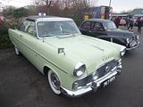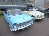 There were several saloon-based models here, too. Among them was an example of the Triumph Herald, in the 13/60 saloon format. Towards the end of the 1950s Standard-Triumph offered a range of two-seater Triumph sports cars alongside its Standard saloons, the Standard 8 and 10, powered by a small (803 cc or 948 cc) 4-cylinder engine, which by the late 1950s were due for an update. Standard-Triumph therefore started work on the Herald. The choice of the Herald name suggests that the car was originally intended to be marketed as a Standard, as it fits the model-naming scheme of the time (Ensign, Pennant and Standard itself). But by 1959 it was felt that the Triumph name had more brand equity, and the Standard name was phased out in Britain after 1963. Giovanni Michelotti was commissioned to style the car by the Standard-Triumph board, encouraged by chief engineer Harry Webster, and quickly produced designs for a two-door saloon with a large glass area that gave 93 per cent all-round visibility in the saloon variant and the “razor-edge” looks to which many makers were turning. As Fisher & Ludlow, Standard-Triumph’s body suppliers became part of an uncooperative BMC, it was decided that the car should have a separate chassis rather than adopting the newer monocoque construction. The main body tub was bolted to the chassis and the whole front end hinged forward to allow access to the engine. Every panel – including the sills and roof – could be unbolted from the car so that different body styles could be easily built on the same chassis. As an addition to the original coupé and saloon models, a convertible was introduced in 1960. The Standard Pennant’s 4-cylinder 948 cc OHV engine and 4 speed manual gearbox was used with synchromesh on the top three gears and remote gear shift and driving the rear wheels. Most of the engine parts were previously used in the Standard 8/10. The rack and pinion steering afforded the Herald a tight 25-foot turning circle. Coil and double-wishbone front suspension was fitted, while the rear suspension, a new departure for Triumph, offered “limited” independent springing via a single transverse leaf-spring bolted to the top of the final drive unit and swing axles. Instruments were confined to a single large speedometer with fuel gauge in the saloon (a temperature gauge was available as an option) on a dashboard of grey pressed fibreboard. The coupé dashboard was equipped with speedometer, fuel and temperature gauges, together with a lockable glovebox. The car had loop-pile carpeting and heater as standard. A number of extras were available including twin SU carburettors, leather seats, a wood-veneered dashboard, Telaflo shock absorbers and paint options. In late 1958, prototype cars embarked on a test run from Cape Town to Tangiers. An account of the journey was embellished by PR at the time. However only minor changes were deemed necessary between the prototype and production cars. The new car was launched at the Royal Albert Hall in London on 22 April 1959 but was not an immediate sales success, partly owing to its relatively high cost, approaching £700 (including 45 per cent Purchase Tax). In standard single-carburettor form the 34.5 bhp car was no better than average in terms of performance. A saloon tested by The Motor magazine in 1959 was found to have a top speed of 70.9 mph and could accelerate from 0–60 mph in 31.1 seconds. A fuel consumption of 34.5 mpg was recorded. The rear suspension was criticised as yielding poor handling at the extremes of performance though the model was considered easy to drive with its good vision, light steering (smallest turning circle of any production car) and controls, and ease of repair. A Herald S variant was introduced in 1961 with a lower equipment level and less chromium than the Herald, offered in saloon form only. The 948cc Herald Coupe and Convertible models were discontinued in 1961, the 948cc Herald Saloon in 1962 and the Herald S in 1964. Standard-Triumph experienced financial difficulties at the beginning of the 1960s and was taken over by Leyland Motors Ltd in 1961. This released new resources to develop the Herald and the car was re-launched in April 1961 with an 1147 cc engine as the Herald 1200. The new model featured rubber-covered bumpers, a wooden laminate dashboard and improved seating. Quality control was also tightened up. Twin carburettors were no longer fitted to any of the range as standard although they remained an option, the standard being a single down-draught Solex carburettor. Claimed maximum power of the Herald 1200 was 39 bhp, as against the 34.5 bhp claimed for the 948 cc model. One month after the release of the Herald 1200, a 2-door estate was added to the range. Disc brakes became an option from 1962. Sales picked up despite growing competition from the BMC Mini and the Ford Anglia, with the car proving particularly popular to women drivers. The coupé was dropped from the range in late 1964 as it was by then in direct competition with the Triumph Spitfire. The Triumph Courier van, a Herald estate with side panels in place of rear side windows, was produced from 1962 until 1966, but was dropped following poor sales. Production in England ceased in mid-1964. CKD assembly by MCA in Malta continued till late 1965, at least. The Courier was powered by the 1147 cc engine. An upmarket version, the Herald 12/50, was offered from 1963 to 1967. It featured a tuned engine with a claimed output of 51 bhp in place of the previous 39, along with a sliding (Webasto) vinyl-fabric sunroof and front disc brakes as standard. The 12/50, which was offered only as a 2-door saloon, was fitted with a fine-barred aluminium grille. The power output of the 1200, which remained in production alongside the 12/50, was subsequently boosted to 48 bhp. In October 1967 the range was updated with the introduction at the London Motor Show of the Herald 13/60, which was offered in saloon, convertible and