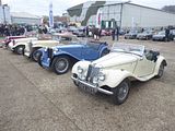There was quite an array of the more recent MG sportscar here, with MGF and TF models from the Owners Club in a double row. MG re-entered the sports car market in 1995 with the launch of the MGF Two versions of this mid-engined and affordable rival to the Mazda MX5 were offered: both of which used the 1.8 litre K-Series 16-valve engine. The cheaper of the two put out 118 hp and the more costly VVC model (by dint of its variable valve control) had 143 hp. Rover Special Projects had overseen the development of the F’s design and before finalising the styling bought-in outside contractors to determine the most appropriate mechanical configuration for the new car. Steve Harper of MGA Developments produced the initial design concept in January 1991 (inspired by the Jaguar XJR-15 and the Ferrari 250LM), before Rover’s in house design team refined the concept under the leadership of Gerry McGovern. The MGF used the Hydragas suspension, a system employing interconnected fluid and gas displacers, which gave the car a surprisingly compliant ride and which could be tuned to provide excellent handling characteristics. The MG F quickly shot to the top of the affordable sports car charts in Britain and remained there until the introduction of the MG TF in 2002. The MG F underwent a facelift in Autumn of 1999 which gave the car a revised interior as well as styling tweaks and fresh alloy wheels designs. There was also the introduction of a base 1.6 version and a more powerful 160 hp variant called the Trophy 160, which had a 0-60 mph time of 6.9 seconds. It was only produced for a limited time. An automatic version with a CVT called the Steptronic was also introduced. A comprehensive update in 2002 resulted in the MG TF, named after the MG TF Midget of the 1950s. Based upon the MG F platform but heavily redesigned and re-engineered, the most significant mechanical changes were the abandonment of Hydragas suspension in favour of conventional coil springs, the new design of the air-induction system that along with new camshafts produces more power than in MG F engines, and the torsional stiffness of the body increased by 20%. Various cosmetic changes included a revised grille, redesigned front headlights, bumpers, side air-intake grills and changes to the rear boot,. The car continued to sell well. Production was suspended when MG-Rover went out of business, but resumed again in 2007 when Nanjing built a number more.