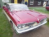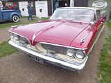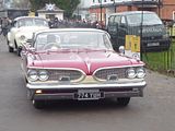 Perhaps the most spectacular car of the day was this 1959 Pontiac Parisienne. The Pontiac Parisienne[a] is a full-size rear-wheel drive vehicle that was sold by Pontiac on the GM B platform in Canada from 1958 to 1986 and in the United States from 1983 to 1986. Right-hand drive models were locally assembled in Australia and South Africa until 1969. For most of its run, the Canadian Parisienne was nearly mechanically identical to the American Chevrolet Impala or Chevrolet Caprice. The Parisienne wagon continued under the Safari nameplate until 1989. The model name comes from the French word Parisienne, which refers to a grammatically female person or thing from Paris. The Parisienne entered the production lineup as a sub-series within the Laurentian line in the 1958 model year. Parisienne became a separate model in 1959. For most of its life, the Parisienne was the Canadian nameplate for the top-of-the-line model sold in GM of Canada’s Pontiac showrooms. Parisiennes were distinct from other Canadian Pontiac models by their standard features: the luxuriousness of upholstery fabrics; standard equipment such as courtesy interior and trunk lights; bright trim mouldings in the interior; distinct exterior accent chrome pieces; and availability of two- and four-door hardtops and convertibles. The first Parisienne, offered for the 1958 model year, was a super deluxe “halo” model in the Laurentian line, much like Chevrolet’s Bel Air Impala of the same year. Chevrolet’s Ramjet fuel injection system, introduced in 1957 in the U.S., was a Parisienne option as well. It was marketed as the “Power Chief” option, but it was identical to Chevy’s Ramjet. Also available for the first year Parisienne was Chevrolet’s Turboglide automatic transmission. Built in the same GM of Canada assembly plant in Oshawa, Ontario, Pontiacs had parallel model lineups as “full size” Chevrolets: the Pontiac “Strato Chief” had similar trim level and upholstery as Chevrolet’s “Biscayne”, the “Laurentian” matched the trim level of the Chevrolet “Bel Air” and while the Parisienne offered similar amenities as Chevrolet’s “Impala”, the Pontiac version had unique and more costly upholstery fabrics, and beginning in 1964 the “Custom Sport” (later rebadged the “2+2”) two-door hardtop and convertible model line was in lock-step with Chevrolet’s “Super Sport”.