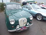 There seemed to be just the one example of the “Big Healey” here, one of Britain’s most popular classics. Donald Healey had been producing a range of expensive sports cars from the 1940s, cars such as the Silverstone, the Abbott and the Farnham. For the 1952 London Motor Show, he produced a new design, which was called the Healey Hundred, based on Austin A90 mechanicals, which he intended to produce in-house at his small car company in Warwick. It was one of the stars of the 1952 Show, and it so impressed Leonard Lord, the Managing Director of Austin, who was looking for a replacement to the unsuccessful A90. that Lord struck a deal with Healey on the spot, to build it in quantity. Bodies made by Jensen Motors would be given Austin mechanical components at Austin’s Longbridge factory. The car was renamed the Austin-Healey 100, in reference to the fact that the car had a top speed of 100 mph. Production got under way in 1953, with Austin-Healey 100s being finished at Austin’s Longbridge plant alongside the A90 and based on fully trimmed and painted body/chassis units produced by Jensen in West Bromwich—in an arrangement the two companies previously had explored with the Austin A40 Sports. By early 1956, production was running at 200 cars a month, 150 of which were being sold in California. Between 1953 and 1956, 14,634 Austin-Healey 100s were produced, the vast majority of them, as was the case for most cars in this post war era, going for export. The car was replaced by an updated model in 1956, called the 100-6. It had a longer wheelbase, redesigned bodywork with an oval shaped grille, a fixed windscreen and two occasional seats added (which in 1958 became an option with the introduction of the two-seat BN6 produced in parallel with the 2+2 BN4), and the engine was replaced by one based on the six-cylinder BMC C-Series engine. In 1959, the engine capacity was increased from 2.6 to 2.9 litres and the car renamed the Austin-Healey 3000. Both 2-seat and 2+2 variants were offered. It continued in this form until production ceased in late 1967. The Big Healey, as the car became known after the 1958 launch of the much smaller Austin-Healey Sprite, is a popular classic now. You come across the 3000 models more frequently than the 100s, as they accounted for more than 60% of all Big Healey production