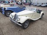 Final version of the popular T Series sports car was the TF, launched on the 15 October 1953. Although it looked quite a bit different, this was really just a facelifted TD, fitted with the TD Mark II engine, headlights faired into the wings, a sloping radiator grille concealing a separate radiator, and a new pressurised cooling system along with a simulated external radiator cap. This XPAG engine’s compression ratio had been increased to 8.1:1 and extra-large valves with stronger valve springs and larger carburettors increased output to 57.5 bhp at 5,500 rpm. In mid-1954 the engine capacity was increased by 17 per cent to 1466 cc and designated XPEG. The bore was increased to 72 mm and compression raised to 8.3:1 giving 63 bhp at 5,000 rpm and a 17 per cent increase in torque. The car was now designated TF1500, and externally distinguished by a cream background enamel nameplate on both sides of the bonnet, placed just to the rear of the forward bonnet-release buttons. Production ended at chassis number TF10100 on 4 April 1955 after 9,602 TFs had been manufactured, including two prototypes and 3,400 TF1500s. A number of replica models have been built in more recent years, with the Naylor of the mid 1980s being perhaps the best known.