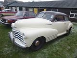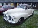 The Chevrolet Special Deluxe Series AH Fleetline is an automobile that was produced by US auto maker Chevrolet from 1941 to 1952. From 1946 to 1948 it was a sub-series of the Chevrolet Fleetmaster rather than a series of the Special Deluxe and, from 1949 to 1951, it was a sub-series of both the Chevrolet Special and the Chevrolet Deluxe. In its final year it was offered only as a sub-series of the latter. The Fleetline was introduced late in the 1941 model year as a four-door sedan only. In 1942, a fastback two-door “Aerosedan” was also offered while the sedan was renamed “Sport Master”. Production was indefinitely deferred in 1942 due to World War II, after 110,000 had been made, though several thousand Chevrolet coupes and sedans were produced during the war years for military staff use. In 1945, production for civilians resumed. In 1947, the Fleetline made up 31,86% of Chevrolet’s sales (213,938 of 671,543). For the years 1949 through 1952, the fastback was the only model offered, and Chevrolet dropped the Fleetline for 1953. The original series was produced through 1948. A redesigned Fleetline with reduced body contour and integrated rear fenders was offered for the 1949 through 1952 model years. It was referred to as a “fastback” because of its distinct sloping roof which extends through to the trunk lid. The Fleetline during the 1949 to 1950 years also has a lower look than a sedan, with the windshield being one inch shorter in height than a standard contemporary sedan. The 1949 to 1951 models were made in both four-door and two-door models, with only the lower part of the doors being interchangeable with a sedan door. The Fleetline series is currently highly collectable. Many are made into street rods, with the common Chevrolet 350 small block V8 and the 350 or 400 turbo transmission being used. However, with the turn of the new decade, the fastback designs were quickly becoming dated. Cadillac had already shed its fastbacks after the 1949 model year, while Buick, Oldsmobile and Pontiac lasted until 1951. Even by its last model year, 1952, the fastback Fleetline models was reduced to just one model, the Deluxe 2-door sedan. However, only 37,164 were produced in that model year, just about one-sixth of the 215,417 Styleline equivalents, and only a fifth of the 1950 high of 189,509. In the 1941 and 1942 model years, the 216 cubic inch inline-six “Blue Flame” engine was the only one offered. It produced 90 hp at 3,300 rpm, and in 1950 higher compression increased it to 92 hp. Also in 1950, a 235.5 cubic inch, single-barrel carburetor, six-cylinder engine producing 105 hp (78 kW) was added. A Fleetline of this vintage could easily exceed 80 mph (130 km/h) without overdrive. In very early models, the transmission was a manual synchromesh three-speed, with vacuum-assisted shift, in which the “three-on-the-tree” shifter was able to be moved between gears by the slightest pressure on the lever. Third gear was direct, meaning the input and output are equal speeds. From 1950 through the 1952 final year of its production, an automatic transmission was offered, which was quite sluggish. Overdrive was a rare option. Connection to the third member rear-end was via an enclosed “torque tube” driveshaft. The brakes were hydraulic with all-wheel drums. In 1951, the brakes got larger. The master cylinder is below the floor connected on the frame rail, beneath the driver. Shock absorbers are of the lever type for the early years only. The windshield for all years is of a split, flat-glass type. The exterior has smooth curves, chrome and stainless trim. In the earlier models the rear bumper has an optional centre bumper guard that has to be ratcheted out of the way so the trunk cover can be lifted. Front and rear bumpers were offered with optional chrome “tips”, a dress-up item that bolts to the ends of the stock bumper. Not a Chevrolet option but a popular after market feature was a large external sunshade that protects the driver from glare off of the metal dashboard. The 1949 to 1952 models are completely different from the earlier years, with the fleetline “fastback” shape being quite distinct from a normal sedan shape. The fastback appearance was shared with all General Motors products from 1942 until 1949, where the appearance is called a “Club Coupe” or “Sedanette” depending on the brand. The interior has cloth bench seats and a metal dash sometimes with a simulated burle woodgrain. The radio is a simple mono vacuum tube type with integrated speaker. An ashtray is on the right side of the dash, near the clock[14] Depending on the year there are both choke and throttle cables on the dash.[clarification needed] On the right side is the choke lever. In the earlier model years the clock is integrated into the glove compartment door and is of a manual-wind seven-day type. In the 1949 and 1950 models the clock is next to the glove box and with the redesigned dash board, the clock is on the top of the dash, in a centre pod. Also, this revised dash has two round pods for the speedometer and other gauges, while the 1949 and 1950 models have one large round pod directly in front of the steering wheel on the dash.