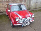 This is a rather elegant looking Mini. These were built in 1989 to mark the 30th anniversary of the model. Based on the Mini Mayfair, it had the standard 998 cc and was mechanically identical to the normal production cars. It could be distinguished by its chrome bumpers and grille, coachlines and 1959-1989 crests, whilst inside there was half leather/lightning cloth upholstery with red piping. Additional equipment included Minilite-style wheels, a security coded stereo and a leather-bound copy of Rob Golding’s book (“Mini”). Of the 3,000 produced for the UK, 2,000 were in Cherry Red and 1,000 were Black; 2,800 were manual and 200 had an automatic gearbox. 600 were made with an optional sun roof.