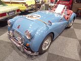 Launched in 1955, the TR3 was an evolution of the TR2 and not a brand new model. It was powered by a 1991 cc straight-4 OHV engine initially producing 95 bhp, an increase of 5 hp over the TR2 thanks to the larger SU-H6 carburettors fitted. This was later increased to 100 bhp at 5000 rpm by the addition of a “high port” cylinder head and enlarged manifold. The four-speed manual gearbox could be supplemented by an overdrive unit on the top three ratios, electrically operated and controlled by a switch on the dashboard. In 1956 the front brakes were changed from drums to discs, the TR3 thus becoming the first British series production car to be so fitted. The TR3 was updated in 1957, with various changes of which the full width radiator grille is the easiest recognition point and the facelifted model is commonly referred to as the Triumph “TR3A”, though unlike the later TR4 series, where the “A” suffix was adopted, the cars were not badged as such and the “TR3A” name was not used officially, Other updates included exterior door handles, a lockable boot handle and the car came with a full tool kit as standard (this was an option on the TR3). The total production run of the “TR3A” was 58,236. This makes it the third best-selling TR after the TR6 and TR7. The TR3A was so successful that the original panel moulds eventually wore out and had to be replaced. In 1959 a slightly modified version came out that had raised stampings under the bonnet and boot hinges and under the door handles, as well as a redesigned rear floor section. In addition, the windscreen was attached with bolts rather than the Dzus connectors used on the early “A” models. Partly because it was produced for less time, the original TR3 sold 13,377 examples, of which 1286 were sold within the UK; the rest being exported mainly to the USA.