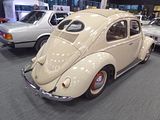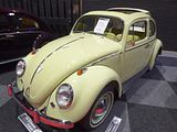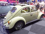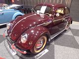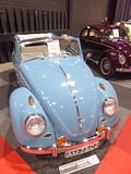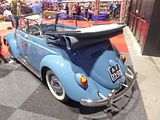 As well as the regular saloon there were a number of examples of the Beetle Cabrio. These were produced by Karmann at their Osnabruck facility. Production of an open-topped Type 1 Beetle Cabriolet began in 1949. The convertible was more than a Beetle with a folding top. To compensate for the strength lost in removing the roof, the sills were reinforced with welded U-channel rails, a transverse beam was fitted below the front edge of the rear seat cushion, and the side cowl-panels below the instrument panel were double-wall. In addition, the lower corners of the door apertures had welded-in curved gussets, and the doors had secondary alignment wedges at the B-pillar. The top was cabriolet-style with a full inner headliner hiding the folding mechanism and crossbars. In between the two top layers was 1 in (25 mm) of insulation. The rear window was tempered safety glass, and after 1968, heated. Due to the thickness of the top, it remained quite tall when folded. To enable the driver to see over the lowered top, the inside rearview was mounted on an offset pivot. By twisting the mirror 180 degrees on a longitudinal axis, the mirror glass would raise approximately 2 in (5.1 cm). The convertible was generally more lavishly equipped than the sedan with dual rear ashtrays, twin map pockets, a visor vanity mirror on the passenger side, rear stone shields, and through 1969, wheel trim rings. Many of these items did not become available on other Beetles until the advent of the optional “L” (Luxus) Package of 1970. After a number of stylistic and technical alterations made to the Karmann cabriolet, corresponding to the many changes VW made to the Beetle throughout its history, the last of 331,847 cabriolets came off the production line on 10 January 1980.