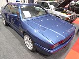 Maserati replaced their entire range in 1981 with the BiTurbo. Introduced initially as a single model, a 2 door coupe with a 2 litre twin-turbo V6 engine, over the next 15 years, it would evolve into a complex range of different models, and three basic bodystyles, as well as the special low-volume Karif and V8 engined Shamal cars. The car was designed by Pierangelo Andreani, Chief of Centro Stile Maserati up to 1981, and was somewhat influenced by the design of the recent Quattroporte III. The BiTurbo marked quite a change of direction for the Modense firm, a consequence of its acquisition by Alejandro de Tomaso in 1976. de Tomaso’s ambitious plans for the marque were to combine the prestige of the Maserati brand with a sports car that would be more affordable than the earlier high-priced models that had traditionally made up the Maserati range. The Biturbo was initially a strong seller and brought Italian prestige to a wide audience, with sales of about 40,000 units, but it quickly became apparent that the quality of the car was way off what the market expected, and the car is not regarded as one of the marque’s better models. Indeed, the Biturbo is number 28 in the BBC book of “Crap Cars” and in 2007 was selected as Time Magazine’s worst car of 1984, although they ranked the Chrysler TC by Maserati as a “greater ignominy”. Between 1987–89 a facelift was phased in, which helped to soften the sharp bodylines. The redesign included a taller and more rounded grille with mesh grille and bonnet, aerodynamic wing mirrors and 15″ disc-shaped alloy wheels, now mounted on 5-lug hubs. Some models received the wraparound bumpers with integral foglights and the deep sills introduced with the 2.24v. In 1991 the entire lineup was restyled for a second time, again by the hand of Marcello Gandini; the design features introduced with the Shamal were spread to the other models. Gandini, the Shamal’s designer, developed an aerodynamic kit that included a unique spoiler at the base of the windscreen hiding the windshield wipers, a rear spoiler, and side skirts. The new two-element headlights used poli-ellypsoidal projectors developed by Magneti-Marelli. Inset in body-colour housings, they flanked a redesigned grille, slimmer and integrated in the bonnet; the 1988 bumpers were adopted by all models. The 15″ disc-shaped alloys were replaced by new 16″ seven-spoke wheels, with a hubcap designed to look like a centerlock nut. The second facelift was referred to as “nuovolook”. The engines underwent change, too. As well as being the first ever production car with a twin-turbocharged engine, it was also the first production car engine with three valves per cylinder. The aluminium 90-degree SOHC V6 engine was roughly based on the 2.0 litre Merak engine, itself based on earlier V8 Formula One Maserati engines, designed by Giulio Alfieri. Because in Italy new cars with engine displacement over 2000 cc were subjected to a 38% value added tax, against 19% on smaller displacement cars, throughout the Biturbo’s production life there were both two-litre models aimed mainly at the domestic market and “export” versions, initially with a 2.5 litre V6. The carburettor 2.5 unit produced 185 hp and 208 lb·ft of torque in North American spec and slightly more elsewhere. Fuel injection was fitted in 1987 raising power to 187 hp. In 1989 the enlarged 2.8 litre engine bumped power to 225 hp and 246 lb·ft of torque for North America and 250 PS for Europe. In 1988, with the coupés being restyled, the Biturbo name was dropped in favour of 222—meaning 2-door, 2-litre engine and 2nd generation. The car carried all the visual clues of Gandini’s first facelift, with a more rounded grille and bonnet, different wing mirrors and rear spoiler. The engine size of the 222 E export model grew from the Biturbo’s 2.5- to 2.8-litres. A mixed velour-leather interior was standard on the domestic models, while export markets got leather upholstery as standard. 1990 saw the arrival of the 2.8 litre 222 SE, heir to the Biturbo ES. It inherited the latter’s limited paint finish availability (red, silver or black) and the dark trim and grille, while modern aprons and side skirts (blacked out as well) came from the 2.24v. After just a year the 222 SE was replaced by the 1991-restyled 222 SR; the SR offered adaptive suspension as an option. Simultaneously the very similar 222 4v. joined the lineup; it was a 222 SR with a 2.8 litre four-valve engine, the first DOHC car in the direct Biturbo E lineage. It used wider, 16″ 7-spoke wheels.