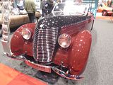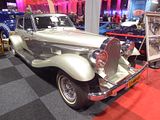 This is a recreation of a Packard Speed Eight. The car is a recreation built by Carrosseriebouw Jansen. It features a straight-eight engine configuration. The original Packard straight-eight engines were known for their impact on the mass-produced American market and were among the last of their kind.