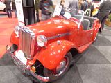 The first of the T Series sports cars appeared in 1936, to replace the PB. Visually they were initially quite similar, and as was the way in the 1930s, updates came frequently, so both TA and TB models were produced before global hostilities caused production to cease. Whilst the TC, the first postwar MG and launched in 1945, was quite similar to the pre-war TB, sharing the same 1,250 cc pushrod-OHV engine, it had a slightly higher compression ratio of 7.4:1 giving 54.5 bhp at 5200 rpm. The makers also provided several alternative stages of tuning for “specific purposes”. It was exported to the United States, even though only ever built in right-hand drive. The export version had slightly smaller US specification sealed-beam headlights and larger twin rear lights, as well as turn signals and chrome-plated front and rear bumpers. The body of the TC was approximately 4 inches wider than the TB measured at the rear of the doors to give more cockpit space. The overall car width remained the same resulting in narrower running boards with two tread strips as opposed to the previous three. The tachometer was directly in front of the driver, while the speedometer was on the other side of the dash in front of the passenger. 10,001 TCs were produced, from September 1945 to Nov. 1949, more than any previous MG model. It cost £527 on the home market in 1947.