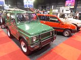 The SJ40 Jimny 1000 was introduced for 1982 to replace the LJ80 range. The Jimny 1000, sold as the Suzuki SJ410 in most export markets, used the F10A – a larger 1-litre version of the LJ’s 0.8-litre four-cylinder engine. This engine produced 45 PS (33 kW; 44 hp) and it had a top speed of 68 mph (109 km/h). The Japanese market models claimed 52 PS at 5,000 rpm. So that owners of 550 cc Jimnys would not be able to retrofit the larger, wider wheels of the Jimny 1000 to their cars, the Japanese ministry of transportation dictated that Suzuki fit wheels with a different bolt pattern. A four-speed manual transmission was standard, as were non-power assisted drum brakes front and rear. The SJ410 came as a half-door convertible, long-wheelbase pickup truck, two-door hardtop (called “Van” in Japan), raised-roof hardtop, and no-glass hardtop (panel van). In Japan, the pickup truck was intended as a bare-bones work vehicle and did not receive fender extensions, and had diagonal tires on black-painted steel wheels rather than the sportier wheels fitted to the regular Jimny. Maximum payload is 350 kg (770 lb). In the autumn of 1983 a covered long-wheelbase version was added for export markets. The SJ410 was also produced in Spain by Santana Motor in their Linares, Jaén factory as of March 1985 and was sold as a domestic vehicle in Europe due to its over 60% native parts content, thereby evading limits on imports of Japanese-built automobiles. It was built only on the short wheelbase, as a two-door convertible and commercial, or with the three door SUV or van bodywork. Some later models of the SJ410 would switch to disk brakes in the front depending on the factory they were made at. In March 1990, Santana-built versions received the same chassis developments which turned the SJ413 into the Samurai; this version was sold as Samurai 1.0 where it was offered (“Samurai Mil” in Spain). Cooper Motor Corporation (CMC) of Nairobi, Kenya, had been building the first generation Jimny and continued with assembly of the SJ410 in the mid-eightiesIn 1984, the SJ was revamped with the launch of the SJ413 (internal model code JA51). The SJ413 included a larger 1.3-litre four-cylinder engine, 5-speed manual transmission and power brakes (disc brakes on the front and drum brakes on the rear) all around. The body and interior were also redesigned, with the introduction of a roll bar, along with a new dashboard, seats, and grille. The SJ410 remained in production for various other markets with the old specifications. After the 1988 introduction of the Escudo, sales of the Jimny 1300 ended in Japan. The model returned to the Japanese market in May 1993, after a thorough update. SJ413 had the same track width as SJ410. As those two car models were relatively susceptible to a rollover, Suzuki introduced a wider edition of SJ413 around 1988, with its track widened by 10 cm, giving the vehicle more stability. This wider edition received the nameplate “Samurai”. The difference in width is the only major difference between SJ413 and Samurai, apart from some minor cosmetic changes in the interior and the exterior. The Samurai was also produced in a long wheel base (LWB) edition for certain markets, but still with three doors. That LWB edition still had only two rear seats (if fitted at all) for two rear passengers, and the rear passenger leg room was the same as in the standard SWB edition. The extended vehicle length only affected the boot/trunk space behind the rear seats, which was significantly larger in the LWB edition.