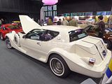 The De Ville is a neo-classic luxury vehicle which was produced by Panther Westwinds, from 1974 to 1985. The De Ville was conceived by Robert Jankel to appeal to the taste of nouveau riche customers, including singer Elton John and actor Oliver Reed. With a wheelbase of 142 inches (3,600 mm), the tubular-framed De Ville used a straight-six engine or a V12 engine from Jaguar Cars. The flowing wing lines and big headlights of the De Ville were styled to imitate the Bugatti Royale. The cockpit of the De Ville was modern, without the exterior’s pretense of pre-war styling. The Panther De Ville was equipped with Jaguar suspension, power steering and automatic transmission, so it was an easy car to drive and quite quick, although poor aerodynamics tended to keep the top speed low. Interiors were lavish and often featured TV sets and drinks bars. The doors of the De Ville were from the BMC 1800 family car. About 60 De Villes were hand-built, including eleven two-door convertibles (for many years Britain’s most expensive listed production car), and one pink and gold six-door limousine.
