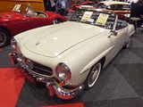 Produced between May 1955 and February 1963, having first been seen in prototype at the 1954 New York Auto Show, the 190SL was designed as a more affordable sports car than the exclusive and rather pricey 300SL, sharing its basic styling, engineering, detailing, and fully independent suspension. While both cars had double wishbones in front and swing axles at the rear, the 190 SL did not use the 300 SL’s purpose-built W198 tubular spaceframe. Instead, it was built on a shortened monocoque R121 platform modified from the W120 saloon. The 190 SL was powered by a new, slightly oversquare 105 PS Type M121 1.9 litre four cylinder engine. Based on the 300 SL’s straight six, it had an unchanged 85 mm bore and 4.3 mm reduced 83.6 mm stroke, was fitted with twin-choke dual Solex carburettors, and produced 120 gross hp. In detuned form, it was later used in the W120 180 and W121 190 models. Both the 190 SL and the 300 SL were replaced by the Mercedes-Benz 230SL in 1963.