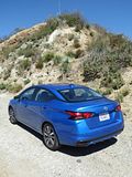 Nissan introduced the Versa to the US market at the 2006 New York Auto Show. Launched initially as a five door hatchback, a four door saloon appeared shortly thereafter and both models went on sale later in the year. At the time, the entry level car was the cheapest model on the American market, offered at $9995.00, and although Hyundai responded with a small price cut to try to distract attention from this new budget model, the Versa has largely been the cheapest new car available to American buyers ever since. US market Versa models were built in Mexico, and, as if often the case with Nissan, were a local adaptation of a car that is sold around the world with various different model names. Those European market who received the car, which did not include the UK, but did include Ireland, knew it as the Tiida and to the Australians, it was the Pulsar. Versa, the name selected for North American markets was supposed to signify “versatile space”, and referred to the roomy cabin and the fact that it was one of the largest cars in its class. US sales increased steadily, and the car became particularly popular with the rental fleets who bought large numbers of them to add to the other Nissan models in their fleet. The second generation Versa was launched at the 2011 New York Auto Show. This one was a derivative of the C17 generation Almera, and was only offered as a saloon, though Nissan further confused matters by taking the second generation Note and calling that the Versa Note for American buyers, thereby still offering both four and five door models at the bottom of their range. Year after year, the entry level car remained America’s cheapest, though far more people bought the slightly pricier mid-spec trim. Sales remained buoyant, with both private and fleet customers appreciating the roomy cabin and low cost, so it was no surprise to see the arrival of a third generation car. Once again based on the Almera, this one was unveiled on 12 April 2019 at the Rock the Ocean’s Tortuga Music Festival in Fort Lauderdale, Florida, United States, where it was marketed as the third-generation Versa saloon, one week before its public debut at the 2019 New York International Auto Show. It is based on the Renault–Nissan CMF-B, which is shared with the Renault Clio V, Renault Captur, fifth-generation Micra and the Kicks. US sales started later in the year. That was just before the Covid lockdowns and the chip supply crisis, so it took a while before this version appeared in the rental fleets with its predecessor still being more prevalent as normality resumed in 2022. But now, the old generation cars are more or less gone, and if you book the cheapest category of car, you are quite likely to be offered a third generation Versa, as this time has also seen a number of rival brands exit this sector of the market. Looking for a car for a slightly shorter day than usual, as I was flying out of LAX late in the afternoon, I spotted a smart Electric Blue painted Versa and decided to take it for the day to see what economy style motoring in 2023 would be like.