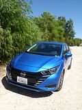 The car I selected turned out to be almost new and was actually a 2023 model year car. That means that it incorporated the mid-cycle update which had appeared in the autumn of 2022. It was exactly what you get with almost all cars these days: slight visual tweaks which only a marque expert will spot and upgraded technology, as well as revisions to the equipment levels. When Nissan revealed this generation of Versa it came hot on the heels of a new Sentra which was only a few months behind a new Altima. All follow the same styling approach to the extent that they are really quite hard to tell apart at a glance. No doubt part of Nissan’s objectives with the Versa were to try to distance it from its reputation as a stripped-out budget car, and to my eyes, at least, I think they succeeded visually. The Electric Blue paint certainly helps, this being a vibrant colour that really stands out especially in the Californian sun. Would the rest of the car stand out, as well? Time to find out!