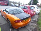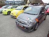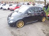 The first of the special production models was the 695 Tributo Ferrari and there was one example of the model at the event. Most of these cars are tucked away in collections, never being used, so it was good to see this one. You got more power than was available in the standard cars at the time, with the engine uprated to 180 bhp, thanks to a different Garrett turbocharger. The spec included a MTA (Manual Transmission Automated) electromechanical transmission with paddle shifter, unique to this version 17 inch alloy wheels with performance tyres, Brembo multi-section discs with fixed 4-piston calipers, “Record Monza” variable back-pressure “dual mode” exhaust, Magneti Marelli Automotive Lighting xenon headlights, “Abarth Corsa by Sabelt” seats in black leather upholstery with carbon fibre shell and seat base, black leather steering wheel with red leather inserts and a tricolour hub, Jaeger instrument panel, non-slip aluminium foot wells, Scorpion racing pedals, special kick plates and a plate bearing the vehicle series number. The Tributo Ferrari was unveiled at the 2009 Frankfurt Motor Show, with deliveries starting in 2010. Four colours were offered: Grey, Abu Dhabi Blue, Scuderia Red and finally Yellow. Of these the red and yellow cars were more numerous, but the car remained rare as it was fearsomely expensive. Just how expensive depended on the dealer, as in a move that only the Italians could make, they were all first registered in Italy and so technically were used cars by the time these right hand drive machines arrived on UK soil, which mean that the dealers could charge what they wanted. Most aimed somewhere between £32 and £36,000, a lot for a car of this size. Nevertheless, they all sold, though many ended up on another boat, off to right hand drive Asian markets, which is why they are a rare sight these days.