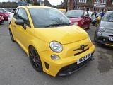 Seen by most as the ultimate model, there was the 695 Biposto. First shown at the 2014 Geneva Show, this 2 seater (that’s what Biposto means in Italian) is nothing other than a road legal version of the 695 Assetto Corse Racing car, a vehicle which has its own race series in Europe. Although the car is road legal, it was envisaged that the majority of people who buy one of these cars will use it on the track and quite frequently. So it was conceived accordingly. That means upgrades to all the important bits – engine, brakes, suspension, gearbox – and some fairly drastic measures to save weight which resulted in a car which generates 190 bhp and 199 lb/ft or 250 Nm of torque with a kerb weight of just 997kg. That’s enough to give a 0 – 60 time that is under 6 seconds, and a top speed of 143 mph. Those are supercar figures produced by a city car. There’s more to it than that, though, as the changes that go to make a Biposto are extensive, and they have been well thought through, so this is a long-way from being a hastily conceived or tuned up special. Ignoring the limited edition cars which arrived during 2015, the “regular” Biposto is only offered in Matt Performance Grey paint, and the car is visually distinctive, with a new front bumper, rear diffuser, wider arches, new skirts and bigger roof spoiler. Although the engine is still the same 1.4 T-jet that features in the lesser 500 and 595 cars, it has been reworked here, with a new Garrett turbocharger, larger intercooler, altered fuel rail and an Akrapovic exhaust system. Buyers can choose between the standard five speed gearbox or an optional race-bred dog-ring unit mated to a mechanical limited slip diff. The standard car’s MacPherson strut and torsion beam suspension has been reworked, too, with altered springs, wider tracks adjustable ride height and dampers with more resilient bushings, using Extreme Shox technology shock absorbers. The brakes are upgraded in line with the extra power, featuring  305mm Brembo discs and four pot calipers up front and 240mm discs with single pot calipers at the rear. The wheels are lightened 18″ OZ and attached via a titanium hub, shod with bespoke 215/35 Goodyear tyres. In the interest of weight saving, a number of standard trim items are removed, including the regular door trims, air conditioning, the rear seats and some of the sound deadening material. Even the standard air vents have been changed so they are covered by a simple mesh. In their place is plenty of polished carbon fibre, a titanium strut brace, racing seats and harness, as well as special trim features such as new pedals, tread plates and a race inspired digital display on the dash where the radio usually sits. After the grey coloured cars, Abarth followed up with the Biposto Rrecord Edition, all finished in Modena Yellow. Just 133 were made of which around 30 are believed to have come to the UK. Many of them are hidden away in collections, but a few of them are actually used such as this one belonging to Florian Holliday. .