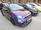 Many Abarth owners modify their cars. Some are content with visual tweaks, but others go a lot further with custom stickers, full wraps, and other addenda, whilst many also make mechanical modifications, all resulting in personalised cars unique to the owner’s taste. There were many examples here of the sort of things that people have done over the years. Many of the mods are well known but there are always some surprises, such as the full wrap in a sort of deep pearlescent purple that Sharon Pottle had done on her car just days before this event.