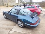 It was only really with the launch in 1989 of the 964 that a truly “new” model would appear. Designed by Benjamin Dimson in 1986, it featured significant styling revisions over previous 911 models, most prominently the more integrated bumpers. The 964 was considered to be 85% new as compared to its predecessor. The first 964s available in 1989 were all wheel drive equipped “Carrera 4” models; Porsche added the rear wheel drive Carrera 2 variant to the range in 1990. Both variants were available as a coupe, Targa or Cabriolet. The 964 Carrera was the last generation sold with the traditional removable Targa roof until the 2011 991. A new naturally aspirated engine called the M64 was used for 964 models, with a flat-6 displacement of 3.6 litres. Porsche substantially revised the suspension, replacing torsion bars with coil springs and shock absorbers. Power steering and ABS brakes were added to the 911 for the first time; both were standard. The exterior bumpers and fog lamps became flush with the car for better aerodynamics. A new electric rear spoiler raised at speeds above 50 mph and lowered down flush with the rear engine lid at lower speeds. A revised interior featured standard dual airbags beginning in 1990 for all North American production cars. A new automatic climate control system provided improved heating and cooling. Revised instrumentation housed a large set of warning lights that were tied into the car’s central warning system, alerting the driver to a possible problem or malfunction. In 1992, Porsche produced a super-lightweight, rear-wheel-drive only version of the 964 dubbed Carrera RS for the European market. It was based on Porsche’s 911 “Carrera Cup” race car and harked back to the 2.7 and 3.0 RS and RSR models. It featured a revised version of the standard engine, titled M64/03 internally, with an increased power output of 260 bhp and lightweight flywheel coupled to the G50/10 transmission with closer ratios, asymmetrical Limited Slip Differential and steel synchromesh. A track-oriented suspension system with 40 mm (1.6 in) lower ride height, stiffer springs, shocks and adjustable stabiliser bars without power steering (RHD UK cars did have power steering). A stripped-out interior devoid of power windows or seats, rear seats, air conditioning, cruise control, sound deadening or a stereo system (optionally fitted) and new racing-bucket front seats were part of the package. The front boot cover was made of aluminium and the chassis was seam welded. Wheels were made of magnesium and the glass was thinner in the doors and rear window. The Carrera RS is approximately 345 pounds (155 kg) lighter than the Carrera 2 model. Also available were a heavier Touring variant (with sound deadening, power seats (optional), undercarriage protection and power windows) and an N/GT racing variant with a stripped, blank metal interior and a roll cage. They also came with optional lights on the visors. The RS was regarded as somewhat challenging to drive, though as time has gone by, everyone seems to have warmed to it.