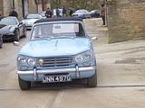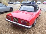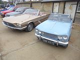 The Triumph Vitesse was introduced on 25 May 1962, reusing a name previously used by the pre-Second World War Triumph Motor Company from 1936–38, and was an in-line 6-cylinder performance version of the Triumph Herald small saloon. The Herald had been introduced on 22 April 1959 and was a 2-door car styled by the Italian designer Giovanni Michelotti. Within two years, Triumph began to give thought to a sports saloon based on the Herald and using their 6-cylinder engine. Michelotti was again approached for styling, and he came up with a car that used almost all body panels from the Herald, combined with a new front end with a slanted 4-headlamp design. Standard-Triumph fitted a 1596 cc version of their traditional straight-6 derived from the engine used in the Standard Vanguard Six, but with a smaller bore diameter of 66.75 mm, compared with the 74.7 mm bore on the Vanguard, equipped with twin Solex B32PIH semi-downdraught carburettors. These were soon replaced by B321H carburettors, as the accelerator pumps proved a problem. The curious observer will notice a “seam” on the cylinder block between the third & fourth cylinders revealing the design beginnings from the 803 cc Standard SC engine block, first used in the Standard Eight of 1953. The gearbox was strengthened and upgraded to closer (more sporting) gear ratios, and also offered with optional Laycock De Normanville ‘D-type’ overdrive with a 20% higher ratio for the top gear (the equivalent change from 3rd to 4th in a standard transmission), giving more relaxed and economical cruising at the expense of slight oil drag from the pump in the overdrive unit. Models fitted with overdrive had a chrome badge with “Overdrive” in italic text on the left side of the boot opposite the Vitesse 6 chrome script badge on the right. Synchromesh was present on 2nd, 3rd and 4th gears. The rear axle was changed to a slightly uprated differential, but retaining the same 4.11:1 ratio and flange sizes as the Herald. Front disc brakes were standard as were larger rear brake drums, and the Herald fuel tank was enlarged, retaining the reserve feature (essentially a curved pickup pipe that could be rotated to dip into the last few centimetres of fuel) of the smaller Herald tank. The front suspension featured uprated springs to cope with the extra weight of the new engine, but the rear suspension was almost the same as on the Herald—a swing-axle transverse-leaf system which quickly proved inadequate for the relatively powerful Vitesse. The chassis looked outwardly similar to the early Heralds but in fact was substantially re-designed and strengthened, especially around the differential mountings, improvements which were immediately passed through to Herald production. The dash and instrument panel of the earliest Vitesse was the same as the Herald, with a single speedo dial featuring fuel and temperature gauge insets. The Vitesse was available in convertible and saloon forms; a coupé never got beyond the prototype stage. The separate chassis construction of the car meant that no additional strengthening to chassis or body was considered necessary for the convertible model, the only concession being additional door catches to prevent the doors opening during hard cornering. The gearboxes of all the Vitesse and GT6 models were a weak point being derived from the earlier Heralds. The increased power caused accelerated wear on the bearing and forward end of the main shaft which would eventually wear through the hardened surface, leading to large amounts of play between the input and main shafts. This was characterised by growling gear noise on acceleration and deceleration in 1st, 2nd and 3rd getting high in each gear as the torque transmission from the lay shaft moved further from the rear of the box where the bearing support was intact. Repair involved either a new mainshaft or metal spraying/stellite repair. Some engineers suggested repairs were more long lived than a new shaft as the technology 10-20 and more years after manufacture meant that the repaired mainshaft had better specifications that new old stock. The remote lever construction suffered from the same regular bushing wear as the herald spitfire etc where sloppy gearchange and rattling can be cured (easy diy job) with a kit of new parts. A handful of Vitesse estates also were assembled to special order at Standard-Triumph’s Service Depot at Park Royal in West London. The interior was much improved over the Herald; wooden door cappings were added to match the wooden dashboard and the car featured slightly better seats and door trims. Optional extras included a vinyl/fabric, (Britax Weathershield), sunroof on saloon models. Exterior trim was also improved with an elongated stainless steel trim piece which extended further down the body than the Herald, including a Vitesse specific piece of trim rearward of the petrol filler cap and satin-silver anodised alloy bumper cappings replacing the white rubber Herald items. In September 1963 the Vitesse received its first facelift, when the dashboard was revised with a full range of Smith instruments instead of the large single dial from the Herald (large speedometer and cable driven tachometer flanked by smaller 2 inch fuel and temperature gauges). From September 1965, at commission number HB27986, the twin Solex carburettors were replaced by twin Stromberg CD 150 carburettors. Power output increased from the original 70 bhp at 5,000 rpm and torque of 92.5 lb/ft (125 Nm), enough to provide a useful performance boost and making the car a more flexible performer. There was a claimed, although somewhat optimistic increase of 13–14 bhp, and the motoring magazine tested top speed rose to 91 mph (146 km/h), with the 0–80 mph (0–129 km/h) time decreasing from 46.6 seconds to just 33.6 seconds. The Vitesse 6 sold extremely well for Triumph, and was by some way the most popular Vitesse sold during the model’s lifetime. The car was well liked