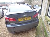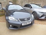 The Lexus IS F debuted at the North American International Auto Show on 8 January 2007. The vehicle features a 5.0 L direct-injected V8 producing 416 SAE hp at 6,600 rpm, while peak torque is 371 lb/ft (503 Nm) at 5,200 rpm. The engine also features a two-stage intake system, engine oil and automatic transmission fluid coolers and an oil pump designed for high-speed cornering. Compared to the 2GR-FSE V6, 306 hp IS 350, the IS F features a 2UR-GSE V8 engine and over 400 hp. The IS F was scheduled to be in dealerships by early 2008. The IS F made its European premiere at the Frankfurt Motor Show in September 2007, and premiered in Japan at the Fuji Speedway in October 2007. The vehicle went on sale in late 2007 in Japan, in early 2008 in the United States, and in Europe in 2008. At its press debut, Lexus revealed that a separate “skunk works” team designed the IS F in a manner distinct from typical Lexus engineering efforts. The chief engineer of the IS F, Yukihiko Yaguchi, previously worked on the Toyota Supra. Much of the IS F’s suspension tuning took place at Fuji Speedway in Japan. The IS F vehicle body was lowered by 1 cm (0.5 inches) compared to the standard IS. The hood features a bulged appearance, with sharper curve than the standard IS, due to the added space needed to contain the 5.0 L V8 engine. The drag coefficient is 0.30 Cd. The exterior also features a wire-mesh grille, changed side fenders and skirts, along with side air vents. One noticeable element of the IS F design were its faux quad exhaust tailpipes consisting of two vertically stacked exhaust tips on each side that did not directly connect to the actual exhaust pipes (tips were part of the bumper, rather than the exhaust). The interior features a four-passenger cabin with braided aluminium panels, steering wheel paddle shifters, and F marque emblems. The IS F also features different seating, with bucket seats in front and rear. The Lexus IS F features a 4,969 cc direct-injected 2UR-GSE V8 producing 416 bhp at 6600 rpm, while peak torque is 371 lb/ft (503 Nm) at 5200 rpm. The engine redlines at 6800 rpm and also features a two-stage intake system, engine oil and automatic transmission fluid coolers and an oil pump designed for high-speed cornering. Along with both port and direct injection, the engine features VVT-iE camshaft timing, and has a compression ratio of 11.8:1. The 2UR-GSE is derived from the Lexus UR-series V8 engines, which debuted as the 1UR-FSE on the 2007 Lexus LS 460. Of the UR-series V8s, the 2UR-GSE is most closely related to the 2UR-FSE used in the 2008 LS 600h. It features the same bore and stroke dimensions (3.70 in x 3.52). However, extensive modifications carried out by the IS F engineering team in conjunction with Yamaha’s Formula One (F1) engine program resulted in a cast-aluminum intake manifold, new cylinder heads, and titanium intake valves. Additionally the engine features a forged crankshaft, connecting rods and cam lobes. At maximum acceleration above 3400 rpm, the secondary intake opens. Compared with the LS 600h’s 2UR-FSE (measured alone without its hybrid-electric motors), the IS F 2UR-GSE has more horsepower and torque at higher rpm, and 17 lb·ft less peak torque (see also Lexus IS F performance specifications). The Lexus IS F features an 8-speed Sport Direct Shift (SPDS) automatic transmission with sequential shift which can lock-up the torque converter from 2nd through 8th gears (see also: Lexus IS transmission specifications). The SPDS is derived from the unit introduced in the 2007 Lexus LS, which was the first vehicle to carry an 8-speed transmission. The SPDS allows for shifts to occur in 0.1 s (100 ms), compared to 0.05 s (50 ms) of F1 race cars. The wheel-mounted paddle shifters allow for gear shifting while steering, and a manual mode can be selected for added control. The 8-speed transmission also improves fuel economy, with lower overall consumption than BMW, Mercedes, and Audi rivals, and avoidance of the U.S. Gas Guzzler Tax. The IS F uses an all-electric rack and pinion steering system with a 13.6:1 gear ratio. The drivetrain is linked to a new sport version of Lexus’ electronic stability control system (Vehicle Dynamics Integrated Management, or VDIM, featuring three distinct on-off modes). The Lexus IS F comes equipped with Brembo cross-drilled brake rotors (14.2 in front, 13.6 rear) and 6-piston front and 2-piston rear aluminium calipers stamped with the Lexus emblem, along with 19-inch BBS forged aluminium alloy wheels. In October 2007, the IS F premiered in Japan, with a 500-unit yearly target for that country, and a 5,000–6,000 yearly unit target for the U.S. market. Top speed was listed at 168 mph (270 km/h). The IS F went on sale in the US in early 2008 with the first 50 IS F units sold as a limited Neiman Marcus special edition. In 2007, the head of Lexus GB stated in an interview that 150 IS Fs would be allocated for the UK market. For 2008, the IS F carried a base price of US$56,000. For 2010, the IS F added a Torsen limited-slip differential, standard iPod/USB connectivity, Bluetooth streaming audio capability, casual language voice commands, and standard XM Satellite Radio. For the 2011 model year the electric power steering system and suspension were revised, with tweaks to the front and rear spring rates, shock absorber dampening, rear bushings and rear camber angle. An interior update included the addition of the Sport button to the steering wheel and a redesign of the gauge cluster featuring a large central tachometer similar to the Lexus LFA. The exterior adds LED daytime running lights and according to Lexus the 2011 IS F can lap Fuji Speedway in 2 minutes, 3.4 seconds or nearly 2 seconds quicker than before. By the final model year in 2014, only approximately 11,500 units had been manufactured, with 5,118 sold in the U.S. They are rare in the UK.