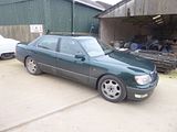The second-generation Lexus LS 400 (UCF20) debuted in November 1994 (for the 1995 model year) with a longer wheelbase and similar specifications as the original model. The public unveiling of the vehicle occurred in a gala ceremony held at the San Francisco Opera House in California. The sedan was equipped with an updated 4.0-liter 1UZ-FE V8 engine, producing 194 kilowatts (260 hp) and 366 newton-metres (270 ft/lb) of torque. Internally, over 90% of the redesigned LS 400’s composition was new or redesigned, with increased sound insulation, a strengthened body structure, suspension updates (first LS/Celsior with Skyhook adaptive computerized air suspension, and improved brakes. The redesigned model was 95 kg (209 lb) lighter than its predecessor and achieved slightly better fuel economy. The 0–100 kilometres per hour (62 mph) time improved to 7.5 seconds. Development of the second-generation LS 400 began after worldwide launch of the first generation under program code 250T. Given the first-generation model’s successful reception and high level of customer satisfaction with its design, replicating the original LS 400’s attributes with its successor was one of chief engineer Kazuo Okamoto’s primary goals (he stated that “a tradition cannot be founded if you reject the first generation”). Externally, the most significant change was an increase in wheelbase length of 36 mm (1.4 in), resulting in more interior space and an additional 66 mm (2.6 in) of rear-seat legroom. However, as the overall length remained the same, trunk capacity was slightly reduced. The more aerodynamic body (Cd 0.28) retained the general profile and contours of the original LS 400 and was the work of the Calty Design Research centre in the U.S. Designers had evaluated 20 competing concepts, including several with a radically changed body, before selecting a winning entry in 1991 that included forms and contours similar to the original LS 400. Upon final approval in 1992, an evolutionary redesign was the ultimate result, with new design features consisting of sharper angles, curved body lines, and a bevelled grille. More prominent side lines provided a reference point for parking manoeuvres, and forward visibility was improved. Production development lasted from 1991 until conclusion in the second quarter of 1994. Design patents were filed at the Japan Patent Office on October 14, 1992 under registration number 732548, using a prototype. The redesigned LS 400 interior received upgraded features, varying from dual-zone climate controls to rear cupholders. A newly patented seat cushion design, similar to the car’s suspension, used lightweight internal coil springs and stabilizer bars to improve comfort. One of the first in-dash CD changers was offered as an option. Safety enhancements included enlarged crumple zones, three-point seat belts at all positions, and a new collapsible steering column. In Japan, the Toyota Celsior equivalents were offered in the same “A”, “B”, and top-spec “C” configurations as before, along with an additional selection of exterior colours. Several optional features, such as a compact disc-based Global Positioning System (GPS) navigation system and reclining rear seats, were available only in Japan. At its U.S. debut, the redesigned LS 400 retained a pricing advantage over European competitors in its largest market, launching with a base price of US$51,000. However, cost differences had narrowed following more aggressive pricing and added feature content from rival manufacturers. To promote their new flagship, Lexus launched a US$50 million advertising campaign, the most expensive marketing effort since the launch of the division. In mid-1995, sales slowed as the U.S. government threatened tariffs on Japanese luxury cars over the widening U.S.-Japan trade deficit, potentially raising the price of a fully optioned LS 400 to over US$100,000. Subsequent negotiations averted the sanctions by the second quarter of that year, and sales recovered in the following months. Ultimately, second-generation LS 400 sales were lower than the original model; production totalled approximately 114,000 units. Production of the UCF20 ran from October 1994 to July 1997. For 1997, a limited “Coach Edition” LS 400 was produced in partnership with American leather manufacturer Coach Inc. The edition featured Coach leather seats; embroidered emblems on the exterior, floormats, and armrest; special colors and added trim; and a Coach cabin bag. Production was limited to a yearly run of 2,500 units. Designed through early 1996, in September 1997 a revised LS 400 was introduced for the 1998 model year. Changes were a five-speed automatic transmission, increased engine output to 290 bhp, with variable valve timing (VVT-i), and an added 41 Nm (30 ft/lb) of torque. Acceleration times and fuel economy were improved as a result. The suspension and steering also received minor tweaks to improve feel and handling. Stylistically, the vehicle sported a new front fascia, side mirrors, and updated wheels; a rear window diversity antenna replaced the conventional power mast. The cabin received upgrades, including a trip computer, HomeLink, retractable rear headrests, reading lamps, and ultraviolet-tinted glass, while the climate control gained a micron filtration feature with a smog sensor. In August 1997, the first production laser adaptive cruise control on a Toyota vehicle was introduced on the Celsior version (Japan only). It controlled speed only through throttle control and downshifting, but did not apply the brakes. Because of laser technology limitations, it deactivated in bad weather. A CD-ROM-based GPS automotive navigation system became an option in the U.S. Added safety features included front side airbags, vehicle stability control and in 2000, brake assist. Low beam HID headlamps were introduced as well. The headlights were also equipped with a programmable delay feature for proximity illumi