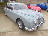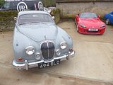 One of the most loved Jaguars of all time, both when it was new, and still now, is the Mark 2 saloon. Many will tell you that it is not the 3 Series BMW that “invented” the “compact sports saloon” car class, but this model, which dates back to 1959. A thorough revision of the small Jaguar saloon that had joined the range in 1955, the Mark 2 was notable in that it was the first car to use the Arabic numeral in its name, as opposed to the Roman numerals of the larger Jaguar models. At launch, the earlier model which had hitherto been known by its engine size was christened the Mark 1. Although clearly based on that car, the updated car looked significantly different, with an increase of 18% in cabin glass area greatly improving visibility. The car was re-engineered above the waistline. Slender front pillars allowed a wider windscreen and the rear window almost wrapped around to the enlarged side windows now with the familiar Jaguar D-shape above the back door and fully chromed frames for all the side windows. The radiator grille was amended and larger side, tail and fog lamps repositioned. Inside a new heating system was fitted and ducted to the rear compartment (although still notoriously ineffective). There was an improved instrument layout that became standard for all Jaguar cars until the XJ Series II of 1973. As well as the familiar 2.4 and 3.4 litre engines, what made this car particularly special was that it was also offered with the potent 220 bhp 3.8 litre unit that was fitted to the XK150 and which would later see service in the E Type. This gave the car a 0 – 60 time of around 8.5 seconds and a top speed of 125 mph. No wonder that the Mark 2 became popular as a get-away car for the criminal fraternity, and to keep up with and catch them, many police forces bought the car as well. With revised suspension and standard four wheel disc brakes, the car was effective on the track, taking plenty of class wins when new, and it is still popular in historic racing circles today. The quickest and most successful private entries came from John Coombs, a man with significant race experience who operated a large Jaguar dealership in Guildford. Coombs would undertake modifications to meet the demands of his customers, so not all the cars that he worked on are the same. Jaguar replaced the Mark 2 with simplified and slightly more cheaply finished 240 and 340 models, as an interim measure until an all-new model was ready to take over from them. The 3.8 litre disappeared from the range at this time, but in the 7 years it had been in production, it had been the best seller of the range, with around 30,000 cars produced, as compared to 28,666 of the 3.4 litre and 25,741 of the 2.4 litre model. This car was not actually at Podium Place but was seen whilst we were in Newbury town centre. It was too good not to include in this report, though.