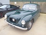 Aston Martin DB2: This was the first new post-war Aston, and the first car to adopt the now legendary DB naming convention, reflecting the fact that in 1947 David Brown had bought the Aston Martin and Lagonda companies and incorporated them as Aston Martin Lagonda Ltd. Lagonda’s 2.6 litre dual overhead cam, straight-six engine, more powerful than the pushrod 1.9 litre unit in the Aston Martin 2-Litre Sports, was the main objective in Brown’s acquisition of the company. W. O. Bentley had supervised the engine’s design, which was largely by William (Willie) Watson, an engineer with the pre-war Invicta company who had collaborated on Lagonda’s pre-war V12 and also designed the short-lived post-war version. Work then started on producing a new car, which was called the DB2. This new model would utilise a version of the Lagonda engine in a shortened version of the tube-frame chassis designed by Claude Hill for the Aston Martin 2-Litre Sports, with a fastback coupé body designed by Frank Feeley. Three pre-production cars were entered for the 1949 24 Hours of Le Mans. One, which would become the development car for the production DB2, had the Lagonda straight-6, while the four-cylinder Aston Martin 2-litre unit powered the other two. After six laps the Lagonda-powered car, driven by Leslie Johnson, retired with overheating caused by failure of the water pump. One of the 2-litre cars was in 4th place and running without brakes when it crashed two hours short of the finish, fatally injuring driver Pierre Maréchal. The other finished 7th, crewed by Arthur Jones and Nick Haines. A month later, the larger-engined car, driven by Leslie Johnson and Charles Brackenbury, finished 3rd in the Spa 24-hour race, where one of the 2-litre cars was driven to 5th by Nick Haines and Lance Macklin. For 1950 all three factory team cars were equipped with the Lagonda engine. At the 1950 Le Mans race the one driven by George Abecassis and Lance Macklin finished 5th, with Brackenbury and Reg Parnell bringing another home 6th, which won Aston Martin 1st and 2nd in the 3-litre class. Across the Atlantic, Briggs Cunningham drove his DB2 to 2nd in its class at the inaugural Sebring race meeting in December 1950. The factory team cars continued racing in Europe throughout 1951, including at Le Mans, where Macklin and Eric Thompson took 3rd overall, with Abecassis and Brian Shawe-Taylor 5th. David Brown soon embarked on a series of Aston Martins designed specifically for competition use, starting with the DB3. Meanwhile, the production DB2 debuted at the New York Auto Show in April 1950 and continued in production until April 1953, by which time 411 had been made. The first 49 had a chrome-framed front grille in three separate parts, and large rectangular cooling vents in the front wings. Subsequent cars had a one-piece grille with horizontal chrome slats, and no side vents. The single-piece bonnet was hinged at the front. At the rear of the fixed-head coupé (FHC) a small top-hinged lid gave access to the spare wheel, and luggage space was behind the front seats, accessible only from inside the car. Later in 1950, a Drophead Coupé (DHC) variant was introduced. At least 102 were built. In April 1950, an engine with larger carburettors, inlet camshaft the same as the exhaust (for increased duration), and higher compression ratio pistons (8.16:1) was made available. Aston Martin’s first Vantage upgrade option offered 125 hp. Initially the higher compression ratio made the engine unsuitable for the British market, as the postwar austerity measures of the early 1950s restricted UK vehicles to 72 octane “Pool petrol”. The first DB2 Vantage, LML 50/21, was delivered to, and raced by, Briggs Cunningham in the United States. A revised version of the DB2 was launched in 1953, called the DB2/4. It was available as a 2+2 hatchback, marketed as a Saloon, as a Drophead Coupé (DHC) and as a 2-seat Fixed Head Coupe. A small number of Bertone bodied spiders were commissioned by private buyers. A further update in 1957 created the Mark III, and this was produced until the launch of the DB4 in 1958.