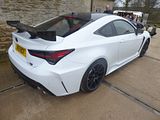 The RC F is a high performance version of the RC. The vehicle was unveiled in the 2014 North American International Auto Show. It went on sale in the United States in November 2014 as a 2015 model year vehicle. It was set to go on sale in Japan in the second half of 2014. The RC F features a 5.0 L (4,969 cc) 2UR-GSE V8 engine with Atkinson cycle at cruising speeds, developing a maximum output of 473 PS (467 bhp) at 7100 rpm and 389 lb/ft (527 Nm) of torque at 4800–5600 rpm. It is coupled to a Toyota AA80E 8-speed transmission built by Aisin AW. The RC F has Brembo four-wheel power assisted disc brakes with anti-lock braking system (ABS), electronic brake force distribution (EBD) and brake assist (BA), and 255/35R19 front and 275/35R19 rear tyres. The RC F is equipped with vertical G-sensor for VDIM, rear Torsen or Torque Vectoring Differential (TVD) with three operating modes (Standard, Slalom, or Track), monotube gas-filled shock absorbers and ball-jointed stabilizer bars, new 19-inch BBS forged aluminum wheels, spindle grille with F-mesh pattern on the lower half, unique front hood which raises the peak of the vehicle, hood air vent from the LFA, front cooling ducts, front fender ducts in the L shape, exclusive combination meters from LFA (a large centrally mounted tachometer that alters according to drive mode, digital and analog speedometer, differential torque vectoring monitor, G-force meter, oil and water temperature gauges, mileage information and a stopwatch), and an elliptical cross-section thick grip steering wheel. The aerodynamic package includes an active rear spoiler, tuning of the underbody, the intakes in the grille and the front fender vents and aero stabilizing fins. The carbon fiber optional package, known in Japan as Carbon Exterior Package, includes a clear coated carbon fiber roof, active rear spoiler, and carbon fiber engine hood. The carbon fiber package parts for the RC F were made at the Aichi plant after the end of the LFA production. To celebrate the 10th-anniversary of Lexus F high performance models, a limited edition RC F was released for the 2018 model year US market. All of the limited edition RC F come in matte-finished Nebula Gray paint with gloss black wheels and bright blue brake calipers. Inside they are equipped with blue leather seats, steering wheel and shift knob, blue Ultrasuede dashboard cover above the instrument cluster, and blue-silver carbon fiber power window switch panel. Despite good reviews, the car has only sold in very small numbers in the UK (and Europe). Production ceased at the end of 2024.