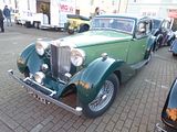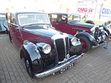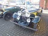 Oldest of the Alvis cars here were from the 12/50 and 12/60 series of cars, which went through a series of versions, with the last ones being made in 1932. A range of factory bodies (made by Carbodies and Cross & Ellis) could be specified in two- or four-seat form, with either open or closed bodies. The first 12/50s were produced in late 1923 for the 1924 model year. The cars from this first year of production were designated SA and SB. The SA had a 1496 cc 4-cylinder overhead valve engine in a chassis with a wheelbase of 108.5 in (2,756 mm), while the SB had a wheelbase of 112.5 in (2,858 mm). The SB was initially fitted with the 1496cc engine, but after the introduction of a 1598 cc version of the OHV engine this became the standard fitment. The engines of these early cars were carried in a subframe bolted to the relatively slender ladder chassis. The SA usually carried two-seat bodywork, typically the Super Sports 2/3-seater nicknamed “duck’s back” because of its pointed rear end, said to resemble that of a duck. The majority of SB cars carried Super Sports four-seater bodywork, but a good number were also fitted with touring bodies from the standard Alvis range. The SA and SB 12/50s were built with (twin shoed) brakes on the rear wheels only. All the 12/50s had a four speed non-synchromesh gearbox with right hand change. The clutch was a fabric-faced aluminium cone. The cars were right hand drive. The SC arrived in Autumn 1924, with the larger 1598 cc engine as standard (though the 1496 cc unit could be specified for sporting use). Most SC 12/50s were built on the longer chassis, which would be standard for the 12/50 until the end of production. Front wheel brakes were offered as an option on this model: a front axle of new design could be supplied with or without brakes. Power transmission was via a roller-bearing prop shaft of new design.The 12/50 was redesigned for the 1926 model year. From Autumn 1925 a new stronger chassis was used for the TE, which had its engine (now built around a redesigned crankcase) enlarged again to 1645 cc, and the TF of the same year with a short stroke version of the same engine, displacing 1496 cc. A single-plate clutch replaced the previous cone type, and for these and all subsequent 12/50s the engine was bolted directly to the flange-frame chassis, dispensing with the subframe of previous models. From the TE and TF models onwards four-wheel brakes were fitted as standard, single-shoe drums on the rear replacing the double-shoe drums of the previous model. The TE and was superseded for the 1927 model year by the TG. Confusingly, the short-stroke TF was replaced in the 1927 range by a car with an ‘S’ prefix: the SD. The TG was the standard ‘touring’ model, while the SD – powered by the 1496 cc engine, now fitted with a large-port cylinder head – satisfied the needs of the sporting motorist. Also available in this year was the TH, which had the gearbox and rear axle ratios of the ‘touring’ TG, but the sub-1500 cc engine of the SD. The TG and SD models were available until 1929. The TG and (very rare) TH models can be recognised by their taller radiators, with a noticeably deeper top section. Cars from the 1928 and 1929 model years also sported higher-set lamps, with horizontal crossbar, in accordance with the fashion of the time. The 12/50 was withdrawn between 1929 and 1930 when the company decided that the future lay with the front-wheel drive FD and FE models, but when these did not reach the hoped for volumes a final version of the 12/50 was announced for the 1931 model year as TJ. Fitted with the 1645 cc engine this continued in production until 1932. The ‘post-vintage’ TJ is referred to by Alvis historians as being from the ‘revival period’, and it differs from its predecessor in a number of ways, notably coil instead of magneto ignition, deep chromed radiator shell, and rear petrol tank in place of the scuttle-mounted tank on most older 12/50s. The TJ was joined in the range by a more sporting version of the same chassis, but this car was marketed not as a 12/50, but as the 12/60. The TK 12/60 was available in 1931, and the TL 12/60 in 1932. The Alvis 12/70 was announced by Alvis cars 22 September 1937. It was a four-cylinder sports saloon or 4-seater drophead coupé related to the pricier six-cylinder Alvis Silver Crest. Technical director and chief designer Smith-Clarke was fully occupied with a new factory to make Alvis’s Gnome-Rhone radial engines so the 12/70 was designed by George Lanchester and it proved to be his last automobile design. Alvis manufactured the four-cylinder 1,842 cc pushrod overhead valve engine[6] which was similar to the engine of the Alvis Firebird but was, in fact, a new design. Its 63 hp was enough to propel the car to a top speed of about 80 mph (130 km/h). Alvis also designed and made the four-speed gearbox which had synchromesh on the top three speeds. Cam steering is by Marles and brakes by Bendix-Cowdrey. Suspension is by half-elliptic springs, those in the back are underslung, dampened by hydraulic shock absorbers. There is an easy jacking system. The standard catalogued four-door four-seater saloon or two-door four-seater drophead coupé bodywork was made for Alvis by Mulliners of Birmingham. It was described by a motoring correspondent of The Times as follows: The four-door body has four sidewindows and makes a comfortable four-seater; the doors have roll armrests and ashtrays and there is a central pull-down rest. The rear windows are “carried well back and allow a very fair view”. The doors have slip pockets and glass louvres that conform to the body’s lines. There is a cupboard in the instrument panel and the instruments and ashtray are centrally placed. There are two-way visors, independent wiper controls (left and right), a spring steering wheel and in its centre ignition, dip and switch (headlights), signalling and horn controls. There are ventilators in the scuttle