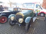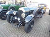 Oldest of the models present was this example of the 3 litre cars that were produced in the 1920s and which epitomise the classic Bentley to many people. The 3 Litre was the company’s first model, first shown in 1919 and made available to customers’ coachbuilders from 1921 to 1929. It was conceived for racing. The Bentley was very much larger than the 1368 cc Bugattis that dominated racing at the time, but double the size of engine and strength compensated for the extra weight. The 4000 lb (1800 kg) car won the 24 Hours of Le Mans in 1924, with drivers John Duff and Frank Clement, and again in 1927, this time in Super Sports form, with drivers S. C. H. “Sammy” Davis and Dudley Benjafield. Its weight, size, and speed prompted Ettore Bugatti to call it “the fastest lorry in the world.” The 3 Litre was delivered as a running chassis to the coachbuilder of the buyer’s choice. Bentley referred many customers to their near neighbour Vanden Plas for bodies. Dealers might order a short cost-saving run of identical bodies to their own distinctive design. Most bodies took the simplest and cheapest form, tourers, but as it was all “custom” coachwork there was plenty of variation. The 2,996 cc straight-4 engine was designed by ex-Royal Flying Corps engineer Clive Gallop and was technically very advanced for its time. It was one of the first production car engines with 4 valves per cylinder, dry-sump lubrication and an overhead camshaft. The four valve SOHC Hemi design, with a bevel-geared shaft drive for the camshaft, was based on the pre-war 1914 Mercedes Daimler M93654 racing engine. Just before the outbreak of the war Mercedes had placed one of the winning Grand Prix cars in their London showroom in Long Acre. At the suggestion of W.O. Bentley, then being commissioned in the Royal Naval Air Service, the vehicle was confiscated in 1915 by the British army, dismantled at Rolls-Royce and subjected to scrutiny. A notable difference to both the Mercedes and the aero engines was the cast-iron monobloc design, and the fully Aluminium enclosed camshaft, which greatly contributed to its durability. But having the valve-head and block in one-piece made for a complicated and labour intensive casting and machining. This was a feature shared during that time by the Bugattis which the car was later to compete with. The engine was also among the first with two spark plugs per cylinder, pent-roof combustion chambers, and twin carburettors. It was extremely undersquare, optimised for low-end torque, with a bore of 80 mm (3.1 in) and a stroke of 149 mm (5.9 in). Untuned power output was around 70 hp, allowing the 3 Litre to reach 80 mph. he Speed Model could reach 90 mph; the Super Sports could exceed 100 mph. A four-speed gearbox was fitted. Only the rear wheels had brakes until 1924, when four-wheel brakes were introduced. There were three main variants of the 3 litre and they became known by the colours commonly used on the radiator badge. There was a definite rule controlling badge colours but astonishingly it has since been established that given “special circumstances” the factory would indeed supply a “wrong” colour. Blue label was the standard model with 117.5 in wheelbase from 1921 to 1929 or long 130.0 in wheelbase from 1923 to 1929. The Red label used a 5.3:1 high compression engine in the 117.5 in wheelbase chassis and was made from 1924 to 1929. The Green label was made between 1924 and 1929 and was the high performance model with 6.3:1 compression ratio and short 108 in wheelbase chassis. 100 mph performance was guaranteed. As well as 3 Experimental cars, Bentley produced 1088 examples of the 3 litre, and the Speed Model numbered 513 and there were 18 Super Sports.