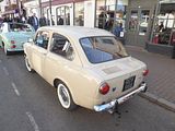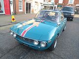 Most Abarths of the 1960s were based on regular Fiat models, and there were some of these on show here. Smallest of these were those based on the Nuova 500, and there was an example here. For the 595 SS, Abarth increased the engine capacity to 594 cc, just under the limit for the European 600cc racing sedan class. High compression 10:1 pistons were used together with a special camshaft, a specific alloy sump, Abarth valve covers and air filter, propped up engine lid and wheels were fitted and of course the exhaust system was a special in house model. This package together with lowered suspension, flared arches and 10 inch rims amounted to what was known as the Assetto Corsa SS model. These cars have become very rare as many were crashed in competition or simply rotted away due to bad rust protection in the 70s A number of recreations have been built, and this is likely such. So, not original, but still nice and still a lot of fun.