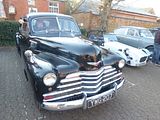 The Chevrolet Fleetmaster is an automobile which was produced by Chevrolet in the United States for the 1946, 1947 and 1948 model years. The Fleetmaster series included the Fleetline sub-series which was offered only in 2-door and 4-door “fastback” bodystyles. The Series DK Fleetmaster was introduced as the top trim level model in the 1946 Chevrolet range, along with the lower level Series DJ Chevrolet Stylemaster. The Fleetmaster, which replaced the “prewar” Chevrolet Special Deluxe, was powered by a 216.5 cu in (3.5 L) Straight-six engine driving through a 3-speed manual transmission. It was offered in 2-door Town Sedan, 4-door Sport Sedan, 2-door Sports Coupe, 2-door Convertible and 4-door Station Wagon models. A Fleetline sub-series was available as the 2-door Aero Sedan and 4-door Sport Master Sedan, both of which featured “fastback” styling and additional triple mouldings on all fenders. The 1947 Series 2100 EK Fleetmaster was little changed from its predecessor, the most notable visual difference being a new radiator grille with a more horizontal theme. The 1948 Series 2100 FK Fleetmaster was again little changed from the previous year. There were no significant body alterations, however the radiator grille featured a vertical centre bar. For the 1949 model year the Fleetmaster was replaced by the 2100 GK Series Chevrolet Deluxe, offered in Styleline and Fleetline sub-series.