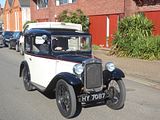 There were several examples of the popular Seven here, and they were each very different. Herbert Austin’s masterpiece which did much to put Britain on wheels in the 1920s was first seen  in 1922, as a four seat open tourer. Nicknamed Chummy, the first 100 featured a 696cc four cylinder engine, which was quickly upgraded to the 747cc unit that remained until the end of production some 17 years later. The first cars had an upright edge to the doors and a sloping windscreen, but from 1924, the screen became upright and there was a sloping edge to the doors, as well as a slightly longer body. Stronger brakes came along in 1926, along with a slightly taller nickel-plated radiator grille, conventional coil ignition, a more spacious body and wider doors. An even longer and wider body arrived in 1930, as well as a stronger crankshaft and improvements to the brakes which coupled front and rear systems together so they both worked by the footbrake. In 1931 the body was restyled , with a thin ribbon-style radiator and by 1932 there was a four speed gearbox to replace the earlier three-speeder. 1933 saw the introduction of the Ruby, a car that looked more modern with its cowled radiator. There were also Pearl and Opal versions. Development continued, so in 1937 there was a move to crankshaft shell bearings in place of the white metal previously used, and the Big Seven appeared. The last Seven was made in 1939, by which time 290,000 had been produced. Aside from saloons and tourers, there had been vans and sports derivatives like the Le Mans, the supercharged Ulster and the rather cheaper Nippy. Around 11,000 Sevens survive today