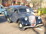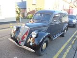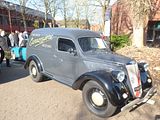 The first all new product from Austin after the war was the A40, which was launched in 1947, as the Dorset (a two door) and Devon (four door saloon). Taking some of their componentry from the pre-war Austin Eight, there was much that was all new in these cars, and sales of the Devon were strong, mostly in export markets. A range of light commercial versions were offered as well, the GV2 Panel Van, GQU2 Pickup and GK Countryman Estate car. The very early GV2 vans, introduced soon after the Devon and the Dorset were obviously based on the saloon, but in fact shared only some parts with it. The doors were the same pressings, although had different interior and exterior trim. The front end panelwork was derived from the saloon, although the front wings had larger apertures to accommodate the 17″ van wheels. The wheels were also much sturdier in design when compared to the 16″ rims fitted to the saloon. The rear bodywork was formed in aluminium, and there was a fabric centre panel in the roof. Removable rear spats covered the rear wheels, a feature shared with the pickup and van-based Countryman estate car. The grille was the mazak/chrome item found on the saloon, and the chassis and running gear, with its hydra-mechanical braking arrangement, were also shared (albeit with revised gear ratios). Early vans and cars had 5″ headlamps, but this would soon switch to Lucas 7″ units, and separate sidelights. At first glance, the A40 van seemed to change little throughout its production, a run that continued long after the contemporary Devon and Somerset saloons ceased, but in detail barely a year went by without some change being introduced by BMC, to improve the van and maintain its competitiveness. It was early in 1951 when the first batch of obvious changes were made. Most evident  was a switch to a new grille assembly, painted instead of chrome. Early vans had smooth bonnets, although due to issues with cooling, extra vents were soon let in to the leading edge of the bonnet. By now the rear bodywork was in steel, including the roof panel, but still featuring separate aluminium rear wheel spats. The switch from the Devon-style dashboard to a simpler painted dash also occurred at around this time. These vans were known as the GV3 series. Late in 1951 the Devon saloon underwent a number of revisions, including a switch to a column gearchange, and hydraulic braking to all four wheels. The 17″ wheels were modified slightly, to accommodate wider brake drums, meaning that wheels for earlier vans are not interchangeable with later examples. The revised GV4 commercials followed many of the changes introduced to the saloon, in preparation for the introduction of the Somerset-type running gear due in 1952. This would be the year that the A40 Devon saloon was replaced, yet the light commercials remained in production, alongside the Somerset saloon, for many years to come. By 1953 the A40’s rear bodywork would see another update, this time integrating the rear arches into the main body of the vehicle, at the same time improving access for wheel changing. The final GV5 series van, introduced in September 1954, continued in production, alongside the new A40/A50 Cambridges, right up to 1957, meaning that the A40 vans stayed in production for ten years. Over 78,000 vans were produced, as well as 61,800 pickups and 26,500 Countryman estates. As with all light commercials, these 1/2 ton vans usually got a real hammering in the hands of the many different tradesmen that bought the 10cwt Austin van. As a result, survivors are distinctly rare on the ground, so it was nice to see this well presented example of the Van.