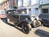 The Austin London Taxicab used a modified Austin Heavy Twelve-Four chassis clothed with new bodies designed by London’s largest taxicab retailer and dealer Mann & Overton, and made for them by London coachbuilders. Will Overton, director of the car dealership Mann & Overton, had been selling Unic taxicabs in London since 1906. In 1924 their business with its French-made Unics had provided almost 80% of the new taxicabs bought in London. In 1925, with effect from 1 May 1926, McKenna duties were imposed on commercial vehicles to protect UK manufacturers from imports and in spite of Unic’s local assembly operation in Cricklewood, opened in 1928, it was no longer possible to supply London with French Unic taxicabs at an acceptable price. So William Overton approached Herbert Austin about modifying the Heavy Twelve-Four hire car chassis so that it would comply with the London Conditions of Fitness. It had been announced in 1927 that those regulations would be lightened with effect from 1928. In view of the easing of police regulations and the enormous gap in the market left by imported vehicles Austin duly modified their hire-car chassis to suit, and Mann & Overton arranged for their catalogued three standard bodies made in Greater London by: Strachan or Vincent or – for £5 more – Jones. From 1930 to 1934 this first Austin London taxicab was colloquially known as the High Lot or Upright Grand. On a new chassis and thereby much lowered its appearance was revised in 1934 and it was renamed by Austin the Low Loading taxi. Previously Austin had only provided hire car chassis not troubling to make major amendments to that chassis to comply with Metropolitan Police regulations for London taxicabs. Because the overall height of the 1930 version[note 1] was much greater than the competition it received the nickname High Lot (HL) or Upright Grand. This design gave top hat wearing customers plenty of room. It was soon outselling the Beardmore and Morris-Commercial versions. Their new Low Loading (LL) taxicab was introduced in 1934 with an overall height some 7 inches lower arranged by using the redesigned back axle (the final drive was switched from overhead to underslung) and dropped cross-braced frame introduced by Austin for their new Light Twelve-Four and Light Twelve-Six cars. Standard equipment included a luxuriously upholstered Standard Cab Landaulette body, cellulose blue with full windscreen, and both front and rear bumpers. Fire extinguisher, horn, number plates, licence holder, taxi sign, Trico visional wiper and speedometer were also included. All exterior fittings were chromium plated. The list price was £395. Hire purchase terms were £50 deposit with monthly instalments of £10, for a total price of £472, or £18 less if purchased completed in 40 months (rebate reduced by £3 for each additional month.) There was one more variant before the outbreak of war, both grille and windscreen were raked, the grille and the wings (mudguards) were flared and matched those of the Austin Twelve saloon introduced in 1934. Few were made before the outbreak of war ended manufacture. These taxicabs proved to be the last with a landaulette body, which was forbidden by new regulations issued soon after the war. After the Second World War, Mann & Overton decided that it needed a more up-to-date design. So it was agreed that Austin would supply the engine/chassis and Carbodies in Coventry the body, although it was actually designed by Austin’s chief body designer Jim Stanfield. In 1948 a new Austin taxi appeared on the streets called the FX3. It was soon the market leader. Although in 1952 a diesel engine from Perkins Engines was available as a conversion, by 1954 Austin was producing their own 2.2 litre diesel engine as a factory fit. Also made by Austin and Carbodies was the hire car FL1 which was almost identical but lacking luggage space by the driver, having instead a bench seat, and there was no roof sign.