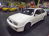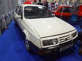 The Sierra RS Cosworth model. a very sporting  version of Ford’s upper-medium sized family car, was built by Ford Europe from 1986 to 1992, the result of a Ford Motorsport project with the purpose of producing an outright winner for Group A racing in Europe. The project was defined in the spring of 1983 by Stuart Turner, then recently appointed head of Ford Motorsport in Europe, who had realised right away that Ford was no longer competitive in this area. Turner got in touch with Walter Hayes, at the time the vice-president of public relations at Ford, to get support for the project. Hayes had earlier been the driving force behind the development of the Ford GT40 that won Le Mans in 1966, and the Cosworth DFV engine that brought Ford 154 victories and 12 world championships in Formula One during the 1960s and 1970s. Hayes found the project very appealing and promised his full support. Turner then invited Ken Kohrs, vice-president of development, to visit Ford’s longtime partner, the automotive company Cosworth, where they were presented a project developed on Cosworth’s own initiative, the YAA engine. This was a twin cam, 16-valve engine based on Ford’s own T88 engine block, better known as the Pinto. This prototype proved an almost ideal basis for the engine Turner needed to power his Group A winner. Therefore, an official request for a turbocharged version (designated Cosworth YBB) capable of 180 HP on the street and 300 HP in race trim, was placed. Cosworth answered positively, but they put up two conditions: the engine would produce not less than 204 HP in the street version, and Ford had to accept no fewer than 15,000 engines. Turner’s project would only need about 5,000 engines, but Ford nevertheless accepted the conditions. The extra 10,000 engines would later become one of the reasons Ford also chose to develop a four door, second generation Sierra RS Cosworth. To find a suitable gearbox proved more challenging. The Borg-Warner T5, also used in the Ford Mustang, was chosen, but the higher revving nature of the Sierra caused some problems. Eventually Borg-Warner had to set up a dedicated production line for the gearboxes to be used in the Sierra RS Cosworth. Many of the suspension differences between the standard Sierra and the Cosworth attributed their development to what was learned from racing the turbocharged Jack Roush IMSA Merkur XR4Ti in America and Andy Rouse’s successful campaign of the 1985 British Saloon Car Championship. Much of Ford’s external documentation for customer race preparation indicated “developed for the XR4Ti” when describing parts that were Sierra Cosworth specific. Roush’s suspension and aerodynamics engineering for the IMSA cars was excellent feedback for Ford. Some production parts from the XR4Ti made their way into the Cosworth such as the speedometer with integral boost gauge and the motorsport 909 chassis stiffening plates. In April 1983, Turner’s team decided on the recently launched Sierra as a basis for their project. The Sierra filled the requirements for rear wheel drive and decent aerodynamic drag. A racing version could also help to improve the unfortunate, and somewhat undeserved, reputation that Sierra had earned since the introduction in 1982. Lothar Pinske, responsible for the car’s bodywork, demanded carte blanche when it came to appearance in order to make the car stable at high speed. Experience had shown that the Sierra hatchback body generated significant aerodynamic lift even at relatively moderate speed. After extensive wind tunnel testing and test runs at the Nardò circuit in Italy, a prototype was presented to the project management. This was based on an XR4i body with provisional body modifications in fibreglass and aluminium. The car’s appearance raised little enthusiasm. The large rear wing caused particular reluctance. Pinske insisted however that the modifications were necessary to make the project successful. The rear wing was essential to retain ground contact at 300 km/h, the opening between the headlights was needed to feed air to the intercooler and the wheel arch extensions had to be there to house wheels 10” wide on the racing version. Eventually, the Ford designers agreed to try to make a production version based on the prototype. In 1984, Walter Hayes paid visits to many European Ford dealers in order to survey the sales potential for the Sierra RS Cosworth. A requirement for participation in Group A was that 5,000 cars were built and sold. The feedback was not encouraging. The dealers estimated they could sell approximately 1,500 cars. Hayes did not give up, however, and continued his passionate internal marketing of the project. As prototypes started to emerge, dealers were invited to test drive sessions, and this increased the enthusiasm for the new car. In addition, Ford took some radical measures to reduce the price on the car. As an example, the car was only offered in three exterior colours (black, white and moonstone blue) and one interior colour (grey). There were also just two equipment options: with or without central locking and electric window lifts. The Sierra RS Cosworth was first presented to the public at the Geneva Motor Show in March 1985, with plans to release it for sale in September and closing production of the 5,000 cars in the summer of 1986. In practice, it was launched in July 1986. 5545 were manufactured in total of which 500 were sent to Tickford for conversion to the Sierra three-door RS500 Cosworth. The vehicles were manufactured in right hand drive only, and were made in Ford’s Genk factory in Belgium. Exactly 500 RS500s were produced, all of them RHD for sale in the UK only – the biggest market for this kind of Ford car. It was originally intended that all 500 would be black, but in practice 56 white and 52 moonstone blue cars were produced.To broaden the sales appeal, the second generation model was based on the 4 door Sierra Sapphire body. It was l