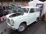The Morris Minor was already well established when rival Austin launched their competitor, the A30 Saloon of 1952. That was also the year that Austin and Morris merged to become the British Motor Corporation, so suddenly the two cars that had been conceived to compete against each other were stablemates. Except BMC did not work like that. Separate dealer chains remained in place, as they would do for a further 30 years, and whilst this may sound inefficient now, it has to be noted that brand loyalty was such that there were plenty of people would only consider an Austin say, and not a Morris, or vice versa. The A30 was smaller than the Minor and at £507, at launch, it was also £60 cheaper. The body structure was designed by T.K. Garrett, who had been an aeronautical engineer before joining Austin. It was of fully stressed monocoque chassis-less construction, which made it lighter and stiffer than most contemporary vehicles, the first Austin to be made in this way. Inside there were individual seats at the front and a bench at the rear covered in PVC with an option of leather facings on the seats. Evidence of economy was seen in only having a single windscreen wiper, central combined stop/tail/numberplate lamp and a sun visor in front of the driver only. A passenger-side wiper and sun visor, and a heater were available as optional extras. Even so, it sold well, and 223,264 examples were built. The A30 was replaced by the Austin A35 in 1956 with the new name reflecting the larger and more powerful 34 hp A-Series engine, which gave the car a slightly higher top speed and better acceleration, though much of this came as a result of different gearbox ratios. The A30 had the first three ratios close together then a big gap to top, whereas in the A35, the ratios were better spaced and gave a higher speed in third gear. That top speed was 72 mph and 0 – 60 acceleration times are just over 30 seconds, so this remains a very slow car by modern standards. The A35 was very similar in appearance to the A30, and is best recognised by its larger rear window aperture and a painted front grille, with chrome horse-shoe surround, instead of the chrome grille featured on the A30. The semaphore trafficators were replaced with present-day front- and rear-mounted flashing light indicators. A slightly easier to operate remote-control gear-change was provided. Like the A30, the A35 was offered as a two- or four-door saloon or two-door “Countryman” estate and also as a van. The latter model continued in production through to 1968. A rare coupe utility (pickup) version was also produced in 1956, with just 477 sold. Drawings were made for a sports tourer, but no prototype was actually built. The A35 passenger cars were replaced by the new body shape A40 Farina models in 1959 but the estate car version continued until 1962 and van until 1968. These days they are popular as an affordable classic. Their simple mechanicals, good availability of some parts (not bodywork, though) and pert looks give them widespread appeal. There was a van model here as well as the regular saloons.