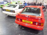 A sporting version of Ford’s front wheel drive Escort was announced at the same time as the “cooking” 1.1, 1.,3 and 1,6 litre cars in October 1980. This was the XR3, and it came initially with a carb fed 1.6 litre engine generating 105 bhp and had a four speed gearbox. Fuel injection finally arrived in October 1982 (creating the XR3i), eight months behind the limited edition (8,659 examples), racetrack-influenced RS 1600i. The Cologne-developed RS received a more powerful engine with 115 PS, thanks to computerised ignition and a modified head as well as the fuel injection. For 1983, the XR3i was upgraded to 115bhp thanks to the use of fuel injection and a five speed transmission had been standardised. Both variants proved very popular, getting a significant percentage of Escort sales and also as a slightly more affordable alternative to a Golf GTi. For those for whom the performance was not quite enough, Ford had an answer, with the the RS Turbo. This 132 PS  car was shown in October 1984, as a top of the range car, offering more power than the big-selling XR3i and the limited production RS1600i. Going on sale in the spring of 1985, it proved to be somewhat of a disappointment, with the chassis coming in for severe criticism.  The RS Turbo Series 1 was only marketed in a few European nations as production was limited to 5,000 examples, all in white. They were well equipped, with the alloy wheels from the limited production RS 1600i, Recaro seats, and a limited slip differential.
