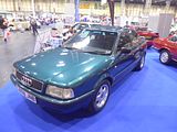 The Audi 80 (B3) obtained a major facelift in the autumn of 1991, although the UK launch was not until early 1992. From then on it was known internally as the B4 (or Typ 8C). Changes from the B3 included a longer wheelbase, a fully redesigned fuel tank and rear axle to enable the use of folding seats, 15″ wheels with more prominent wheel arches, redesigned and painted rear and front bumpers, as well as higher-quality materials for the interior, and a larger boot. The front grille was merged with the bonnet and given a bolder look. This design had been previewed on the 1990 Audi Coupé S2 and was applied to the full lineup of the B3-based Coupés as well in July 1991. The Cabriolet (Typ 8G) had been introduced in May 1991 and continued to be built long after the B4 had been replaced, receiving similar updates to the Audi 80 B4 and succeeding Audi A4. The B4 also marked the beginning of Audi’s move into the German luxury mid-sized vehicle segment, which until then was clearly dominated by Mercedes-Benz and BMW. On the European market, and in Germany in particular, the B4 and its variants were highly successful and popular. In Europe, the 90 designation for five-cylinder models was dropped for this generation, and all saloons were badged as 80, regardless of which engine they had. Audi of America went the opposite direction, and sold the saloon as the 90. B4s for the American market typically offered more luxury and style even in the standard version, such as automatic transmission, cruise control, air conditioning, and leather seats, all of which were usually optional at additional cost on European models. Because the United States does not recognise the international ECE Regulations on auto safety components and constructions, but rather maintains its own Federal Motor Vehicle Safety Standards, the front of the B4 had to be specially redesigned for vehicles sold in North America. The front and bumper had to be designed to accommodate impact energy absorbers not required outside North America. Instead of the dual-reflector headlamps, a single-reflector design was used inboard of an amber combination turn signal, parking, and side marker lamp and reflector wrapping around the corner, and fog lamps smaller than the rest-of-world items were placed on the corners of the bumper air duct. European market cars were now available with a selection of inline four-cylinder engines, as well as the familiar in-line five, and two different new V6 engines (2.6-litre and 2.8-litre); the later 2.8-litre V6 was the only engine available for vehicles sold in North America. As another first, Audi introduced a new high-torque, direct-injection, turbocharged diesel engine, the 90 PS/ 89 bhp 1.9-litre TDI (Turbocharged Direct Injection). The standard 1.8-litre petrol engine of the B3 was discontinued; a two-litre, 90 PS/89 bhp, four-cylinder petrol engine, a variation of the previously known 116 PS/114 bhp 2.0 E engine, was now available for the base model.  Together with the saloon, Audi produced a B4-based estate, the Audi 80 Avant, and a convertible, the Audi Cabriolet, which was largely based on the B3 Coupé. This meant that Audi now had saloon, coupé, cabriolet, and estate variants of the 80 available to European customers. For the North American market, however, Audi only sold coupés during the 1990 and 1991 model years, and the estate was never officially available. As of the 1994 model year, a limited edition model, known as Europa, was introduced on the European market. It could be ordered both as a saloon and an Avant. It was factory-equipped with power mirrors, alloy wheels, rear seat headrests, an airbag steering wheel, and offered a choice between power sunroof or air conditioning. It came in five different special colours. For “regular” 1994 B4 saloons and Avants, standard features as well as options available were stepped up too, including an airbag steering wheel and redesigned door liners (standard), and passenger airbags and a built-in engine immobiliser (optional). The 80-series was effectively replaced by the new Audi A4 in 1994, a variant of the 1996 (B5) Volkswagen Passat. By that time it was feeling very dated in comparison with more modern rivals such as the BMW E36. Production ceased at a time when prestige European manufacturers were making the transition of older executive saloons to newer models based on newer platforms in the compact executive car market. The B4 saloon was discontinued at the end of the 1994. The Avant was axed in 1995, and the Coupé (with no immediate replacement) followed suit in 1996. The Cabriolet, however, continued in production until August 2000. The B4 platform saloon was replaced by the Audi A4 for the 1995 model year (1996 in North America), followed by a new A4 Avant later in 1996. A mid-sized convertible was not available again until 2002, when the A4 Cabriolet was introduced. Since 2007, Audi has produced Audi A5 – which is similar in concept to the old 80-based Coupé.