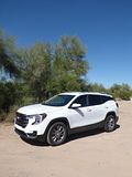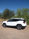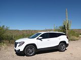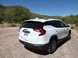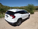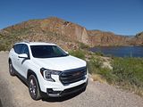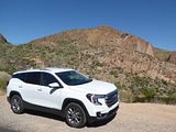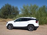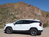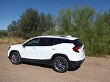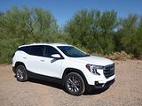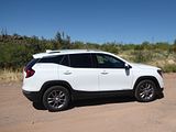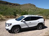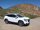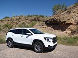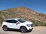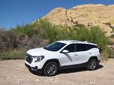 The 2023 GMC Terrain comes in four trims: SLE, SLT, AT4 and Denali. All are outfitted with the same 175 bhp four-cylinder engine and a nine-speed automatic transmission. Front-wheel drive is standard in the SLE and SLT trims, while all-wheel drive is available. The AT4 and Denali trims are all-wheel-drive only. Standard features in the base SLE include cloth upholstery, manually adjustable front seats, a 7-inch touch screen, wireless Apple CarPlay, wireless Android Auto, Bluetooth, four USB ports, satellite radio, a six-speaker stereo, a Wi-Fi hot spot, push-button start and automatic climate control. The Terrain also comes standard with forward collision warning, pedestrian detection, forward automatic emergency braking, lane-departure warning, lane-keep assist, automatic high-beam headlights, a rearview camera and a rear-seat alert. Available features include heated front seats, an 8-inch touch screen, navigation, dual-zone automatic climate control, remote start, a power liftgate, blind-spot monitoring, rear cross-traffic alert, rear parking sensors, a safety alert seat, adaptive cruise control, roof rails and a sunroof. The Terrain SLT gains leather upholstery, heated and power-adjustable front seats, a heated steering wheel, an 8-inch touch screen, dual-zone automatic climate control, remote start, ambient interior lighting, a 120-volt household-style power outlet, a hands-free power liftgate, fog lights, roof rails and 18-inch wheels. Additional options include front parking sensors, a surround-view camera system, a head-up display and a seven-speaker stereo. The AT4 trim adds a skid plate, 17-inch wheels and black exterior accents. Most options carry over unchanged. The range-topping Denali trim includes all the SLT features, plus an 8-inch digital instrument cluster display, a seven-speaker stereo, wireless device charging, navigation, front and rear parking sensors, blind-spot monitoring, rear cross-traffic alert, a head-up display, a safety alert seat and 19-inch wheels. In addition to a few of the previous options, this trim is available with ventilated front seats, heated rear seats and hands-free parking assist.