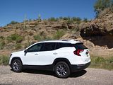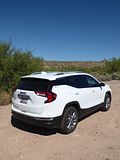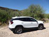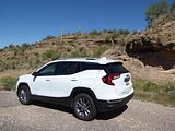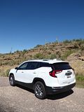 All models of Terrain get the same 1.5 litre turbo 4 cylinder engine. Recent models had power boosted by 5 bhp to give a total of 175 bhp, and there is a standard nine-speed automatic gearbox, with buttons that you press or pull on the dash below the infotainment unit. That 175 bhp is a little less than you will find in most of the Terrain’s competitors. In gentle motoring, all is fine and the Terrain seems perfectly OK in keeping up with the traffic flow, but if you want meaningful acceleration you will need to work the car quite hard and the engine you thought was smooth and refined gets significantly noisier as you make it do more work. Published acceleration figures quote a 0 – 60 time of well over 9 seconds which by modern standards is pretty slow. The theory is that GMC optimised this car for economy, but if you work it hard, then that may not prove to the case. I covered 123 miles in my time with the Terrain and put 3.93 gallons in to fill it which worked out at 31.3 mpg US or 37.39 mpg Imperial, which is good but not that impressive. At least on the freeway at a steady speed, the Terrain was pleasingly quiet and refined, but take it on steeper inclines and it was less relaxing.