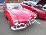 Following the 1900 family, Alfa’s next new model range would be cheaper and aimed at capturing some of the market from middle class buyers. Known as Giulietta, the 750 and later 101 Series were a series of family-sized cars made from 1954 to 1965, and Alfa Romeo’s first, successful, foray into the 1.3-litre class. The first to be introduced was the Giulietta Sprint 2+2 coupé which was premiered at the 1954 Turin Motor Show. Designed by Franco Scaglione at Bertone, it was produced at the coachbuilder’s Grugliasco plant, near Turin. A year later, at the Turin Motor Show in April 1955, the Sprint was joined by the 4-door saloon Berlina. In mid 1955, the open two-seat Giulietta Spider, featuring convertible bodywork by Pininfarina arrived. The Giulietta used unibody construction and a front-engine, rear-wheel-drive layout. Front suspension was by control arms, with coaxial coil springs and hydraulic dampers. At the rear there was a solid axle on coil springs and hydraulic dampers. The axle was located by a longitudinal link on each side, and by a wishbone-shaped arm linking the top of the aluminium differential housing to the chassis. All Giuliettas (save for the last SZ examples) had hydraulic drum brakes on all four corners. The Giulietta used an Alfa Romeo Twin Cam straight-four of 1290 cc, with an aluminium alloy engine block and cast iron inserted sleeves. Bore and stroke measured 74.0 mm and 75.0 mm. The aluminium alloy cylinder head was of a crossflow design and featured hemispherical combustion chambers. The double overhead camshafts were driven by two timing chains, and acted on two valves per cylinder, angled 80°. In 1957 a more powerful Berlina version, called Giulietta T.I. (Turismo Internazionale) was presented with minor cosmetic changes to the bonnet, the dial lights and rear lamps. Carrozzeria Colli also made the Giulietta station wagon variant called Giulietta Promiscua. Ninety-one examples of this version were built. Carrozzeria Boneschi also made a few station wagon examples called Weekendina. A new version of the Giulietta Berlina debuted at the Frankfurt Motor Show in 1959. Mechanical changes were limited to shifting the fuel pump from the cylinder head to a lower position below the distributor, and moving the previously exposed fuel filler cap from the tail to the right rear wing, under a flap. The bodywork showed a revised front end, with more rounded wings, recessed head lights, and new grilles with chrome frames and two horizontal bars. The rear also showed changes, with new larger tail lights on vestigial fins, which replaced the earlier rounded rear wings. The interior was much more organised and upholstered in new cloth material; the redesigned dashboard included a strip speedometer flanked by two round bezels, that on the T.I. housed a tachometer and oil and water temperature gauges. The T.I. also received a front side repeater mounted in a small spear, unlike the Normale which kept the earlier small round lamp with no decorations. During 1959 the type designation for all models was changed from 750 and 753 to 101. In February 1961 the 100,001st Giulietta rolled out of the Portello factory, with a celebration sponsored by Italian actress Giulietta Masina. In Autumn 1961 the Giulietta was updated a second time. Both Normale and T.I. had revised engines and new exhaust systems; output rose to 61 bhp and 73 bhp. With this new engine the car could reach a speed of almost 100mph. At the front of the car square mesh side grilles were now pieced together with the centre shield, and at the rear there were larger tail lights. Inside the T.I. had individual instead of bench seats, with storage nets on the seatbacks. June 1962 saw the introduction of the Alfa Romeo Giulia, which would eventually replace the Giulietta. As until 1964 the Giulia only had a larger 1.6-litre engine, production of the standard Berlina ended with 1963, whilst the T.I. continued for a full year more. A last T.I. was completed in 1965. The Giulietta sport models had a different fate: Sprint, Sprint Speciale and Spider were fitted with the new 1.6-litre engine, received some updates and continued to be sold under the Giulia name until they were replaced by all-new Giulia-based models during 1965. These days., the Berlina is the model you see the least often. A few of the model are used in historic racing where the car takes on the might of those with far larger engines. A total of 177,690 Giuliettas were made, the great majority in Berlina saloon, Sprint coupé or Spider roadster body styles. It was the Spider and Sprint coupe which were represented here.