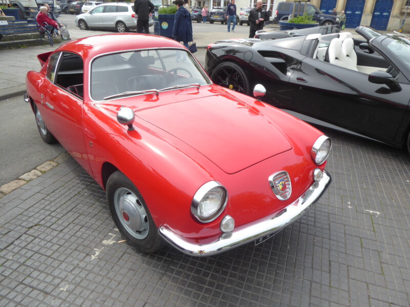 Without doubt the rarest car of the day, and a real highlight for me, was this 750 GT Sestriere. When I saw it on the bookings system, I assumed it would be the same car that I had seen at Classic Motor Hun’s Italian Day the previous summer, which was a deep red coloured example. So I was somewhat surprised when this one turned up, and was clearly a different car. It turned out that the owner has had this one a long time and he is very local to Devizes. The car does not get used much which is why I had never seen it at any before. Detailed records of what Abarth produced are somewhat conspicuous by their absence, but some things are known. A subset of the 750 GT Zagato model, termed “Sestriere” was also seen throughout the production years. The Sestriere model was named after the Rallye de Sestriere, one of Europe’s most punishing Alpine rally events on the annual calendar at that time, providing the Italian round of the contemporary rally drivers’ Championship. Above all, the Fiat-Abarth 750 Sestriere was a tough and resilient little competition car in true Abarth fashion, though it was actually intended more for road use. Initially the “Sestriere” name was used in some Abarth 750 cars and was based on the “softened” tuning level (possibly GT) used on at least the second of the two overall winners of the Rally Sestriere (February 1958 and February 1959). It seems that a more standard “Sestriere” model was introduced in1959-1960 and appeared as a variant to the “double bubble”. According to an article from Auto Italiana Sport, March 1, 1960 (as seen on John de Boer’s Sestriere information), this later “Sestriere” version is generally considered to be a steel bodied version without roof bubbles. It also has more forward positioned open head lights and a much larger set of rear air intakes to allow for improved cooling. It was not intended for racing like its double bubble brother. The engine was also different with designations of either Tipo 215 (748cc) or Tipo 213A (785cc). Of note, some Sestrieres have been described/claim to have aluminium bodies and/or double bubbles.