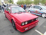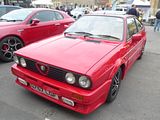 As was still the practice in the 1970s, Alfa followed up the launch of the Alfetta Berlina with a very pretty coupe. Styled by Giugiaro, this car, initially called the GT, and premiered in the autumn of 1974, looked completely unlike the saloon on which it was based. The first cars had 1.8 litre four cylinder engines and there was one of those on show. In 1976 the range was expanded both up and down with a 1.6 and a 2.0 model, the latter adopting the legendary GTV name. A rare SE model from this period was part of the display, complete with period vinyl roof (look closely), and although the pain does appear a bit like a lot of older Alfa reds, having gone rather pink, this was the actual shade when the car was new. In 1981, with the 2.5 litre V6 engine that had been developed for the ill-fated Alfa 6 luxury saloon available, Alfa was able to create a true rival for the 2.8 litre Capri with the GTV6. A facelift modernised the look of the car with plastic bumpers front and rear and a new interior looked rather better as well as being more ergonomically logical. There was a good mix of the earlier chrome bumpered and later plastic bumpered models, the last with 2.0 and 2.5 GTV6 versions both represented. There was also a car sporting 3.0 badging and right hand drive. This is a South African car. From 1974 South African Alfetta’s were manufactured at Alfa Romeo’s own Brits plant. South Africa was one of two markets to have a turbocharged GTV6, with a Garrett turbocharger and a NACA intake. An estimated 750 were assembled before all production ceased in 1986. The South African range included a 3.0 litre GTV-6, predating the international debut of the factory’s 3.0 litre engine in 1987 (for the Alfa 75). and 212 of these were built in South Africa for racing homologation. The last 6 GTV-6 3.0’s were fuel injected. To this day, the GTV-6 remains the quintessential Alfa Romeo for South Africans.