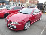 Rather than replacing the 916 Series GTV with a single model, Alfa elected to produce two successors., The more commodious of the two, the GT, was the first to appear, making its debut in March 2003 at the Geneva Motor Show, finally going on sale in early 2004. It was built at the Pomigliano plant, alongside the 147 and 159. The GT was based on the Alfa 156 platform, which was also used for the 147, providing the 2-door coupé with genuine five-passenger capacity. It was styled by Bertone. Most mechanicals were taken directly from the 156/147 using the same double wishbone front suspension and MacPherson rear setup. The interior was derived form the smaller hatchback 147 and shared many common parts. The GT shared the same dash layout and functions, the climate control system as well as having a similar electrical system. Some exterior parts were taken from 147 with the same bonnet, wing mirrors and front wings (from 147 GTA). The engine range included both a 1.8 TS, and 2.0 JTS petrol engine, a 1.9 MultiJet turbodiesel, and a top-of-the-range 240 bhp 3.2 V6 petrol. There were few changes during the GT’s production life. In 2006 Alfa introduced a 1.9 JTD Q2 version with a limited slip differential, and also added a new trim level called Black Line. In 2008 Alfa introduced the cloverleaf model as a limited edition complete with new trim levels, lowered suspension, body kit, 18 inch alloy wheels and was only available in the colours black, Alfa red, or blue. with 1.8 and 2.0 litre petrol engines as well as the 1.9 litre Multijet turbo diesel. The GT was acclaimed for its attractive styling and purposeful good looks, in 2004 being voted the world’s most beautiful coupe in the annual ‘World’s Most Beautiful Automobile’ (L’Automobile più Bella del Mondo) awards. The car sold reasonably well, with 80,832 units being produced before the model was deleted in 2010.