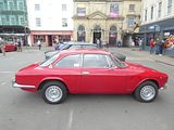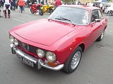 The first car was called the Alfa Romeo Giulia Sprint GT, and was revealed at a press event held at the then newly opened Arese plant on 9 September 1963, and displayed later the same month at the Frankfurt Motor Show. In its original form the Bertone body is known as scalino (step) or “step front”, because of the leading edge of the engine compartment lid which sat 1/4 an inch above the nose of the car. The Giulia Sprint GT can be distinguished from the later models by a number of features including: Exterior badging: Alfa Romeo logo on the front grille, a chrome script reading “Giulia Sprint GT” on the boot lid, and rectangular “Disegno di Bertone” badges aft of the front wheel arches; flat, chrome grille in plain, wide rectangular mesh without additional chrome bars; single-piece chrome bumpers; no overriders. Inside the cabin the padded vinyl dashboard was characterised by a concave horizontal fascia, finished in grey anti-glare crackle-effect paint. Four round instruments were inset in the fascia in front of the driver. The steering wheel was non-dished, with three aluminium spokes, a thin bakelite rim and a centre horn button. Vinyl-covered seats with cloth centres and a fully carpeted floor were standard, while leather upholstery was an extra-cost option. After initially marketing it as a four-seater, Alfa Romeo soon changed its definition of the car to a more realistic 2+2. The Giulia Sprint GT was fitted with the 1,570 cc version of Alfa Romeo’s all-aluminium twin cam inline four (78 mm bore × 82 mm stroke), which had first debuted on the 1962 Giulia Berlina. Breathing through two twin-choke Weber 40 DCOE 4 carburettors, on the Sprint GT this engine produced 105 hp at 6,000 rpm. Like all subsequent models, the Sprint GT was equipped with an all-synchromesh 5-speed manual transmission. The braking system comprised four Dunlop disc brakes and a vacuum servo. The rear brakes featured an unusual arrangement with the slave cylinders mounted on the axle tubes, operating the calipers by a system of levers and cranks. According to Alfa Romeo the car could reach a top speed of “over 180 km/h (112 mph)”. In total 21,902 Giulia Sprint GT were produced from 1963 to 1965, when the model was superseded by the Giulia Sprint GT Veloce. Of these 2,274 were right hand drive: 1,354 cars fully finished in Arese, and 920 shipped in complete knock-down kit form for foreign assembly. For 1966, the Giulia Sprint GT was replaced by the Alfa Romeo Giulia Sprint GT Veloce, which was very similar but featuring a number of improvements: a revised engine—slightly more powerful and with more torque—better interior fittings and changes to the exterior trim. Alongside the brand new 1750 Spider Veloce which shared its updated engine the Sprint GT Veloce was introduced at the 36th Geneva Motor Show in March 1966, and then tested by the international specialist press in Gardone on the Garda Lake. Production had began in 1965 and ended in 1968. The Giulia Sprint GT Veloce can be most easily distinguished from other models by the following features: badging as per Giulia Sprint GT, with the addition of round enamel badges on the C-pillar—a green Quadrifoglio (four-leaf clover) on an ivory background—and a chrome “Veloce” script on the tail panel; black mesh grille with three horizontal chrome bars; the grille heart has 7 bars instead of 6; stainless steel bumpers, as opposed to the chromed mild steel bumpers on the Giulia Sprint GT. The bumpers are the same shape, but are made in two pieces (front) and three pieces (rear) with small covers hiding the joining rivets. Inside the main changes from the Giulia Sprint GT were imitation wood dashboard fascia instead of the previous anti-glare grey finish, front seats revised to a mild “bucket” design, and a dished three aluminium spoke steering wheel, with a black rim and horn buttons through the spokes. The Veloce’s type 00536 engine, identical to the Spider 1600 Duetto’s, featured modifications compared to the Giulia Sprint GT’s type 00502—such as larger diameter exhaust valves. As a result it produced 108 hp at 6,000 rpm, an increase of 3 hp over the previous model, and significantly more torque. The top speed now exceeded 185 km/h (115 mph). Early Giulia Sprint GT Veloces featured the same Dunlop disc brake system as the Giulia Sprint GT, while later cars substituted ATE disc brakes as pioneered on the GT 1300 Junior in 1966. The ATE brakes featured an handbrake system entirely separate from the pedal brakes, using drum brakes incorporated in the rear disc castings. Though the Sprint GT Veloce’s replacement—the 1750 GT Veloce—was introduced in 1967, production continued throughout the year and thirty final cars were completed in 1968. By then total Giulia Sprint GT Veloce production amounted to 14,240 examples. 1,407 of these were right hand drive cars, and 332 right hand drive complete knock-down kits. The Alfa Romeo 1750 GT Veloce (also known as 1750 GTV) appeared in 1967 along with the 1750 Berlina sedan and 1750 Spider. The same type of engine was used to power all three versions; this rationalisation was a first for Alfa Romeo. The 1750 GTV replaced the Giulia Sprint GT Veloce and introduced many updates and modifications. Most significantly, the engine capacity was increased to 1779 cc displacement. Peak power from the engine was increased to 120 hp at 5500 rpm. The stroke was lengthened from 82 to 88.5 mm over the 1600 engine, and a reduced rev limit from 7000 rpm to 6000 rpm. Maximum torque was increased to 137 lb/ft at 3000 rpm. A higher ratio final drive was fitted (10/41 instead of 9/41) but the same gearbox ratios were retained. The result was that, on paper, the car had only slightly improved performance compared to the Giulia Sprint GT Veloce, but on the road it was much more flexible to drive and it was easier to maintain higher average speeds for fast touring. For the United States market, the 1779 cc eng