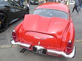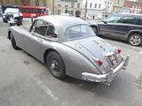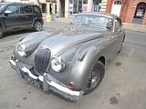 Jaguar XK150: Although bearing a family resemblance to the earlier XK120 and XK140, the XK150, launched in the spring of 1957, was radically revised. A one-piece windscreen replaced the split screen, and the wing line no longer dropped so deeply at the doors. The widened bonnet opened down to the wings, and on the Roadster the windscreen frame was moved back 4 inches to make the bonnet longer. The XK140’s walnut dashboard was replaced by one trimmed in leather. On the early Drophead Coupés, the aluminium centre dash panel, which was discontinued after June 1958, had an X pattern engraving similar to the early 3.8 E-Type. Thinner doors gave more interior space. On the front parking lights, which were located atop the wings, a little red light reminded the driver the lights were on. Suspension and chassis were very similar to the XK140, and steering was by rack and pinion; power steering was not offered. The standard engine, the similar to the XK140, but with an new “B” type cylinder head, was the 3.4 litre DOHC Jaguar straight-6 rated at 180 SAE bhp at 5750 rpm but most cars were fitted with the SE engine whose modified cylinder head (B type) and larger exhaust valves boosted the power to 210 SAE bhp at 5500 rpm. Twin 1.75-inch (44 mm) SU HD6 carburettors were fitted. While the first XK150s were slower than their predecessors, the deficit was corrected in the spring of 1958 with a 3.4-litre “S” engine whose three 2-inch SU HD8 carburettors and straight-port cylinder head increased power to a claimed 250 SAE bhp. For 1960, the 3.4 litre engine was bored to 3.8 litres, rating this option at 220 hp in standard tune or 265 hp in “S” form. A 3.8 litre 150S could top 135 mph and go from 0–60 mph in around 7.0 seconds. Fuel economy was 18mpg. Four-wheel Dunlop 12 in disc brakes appeared for the first time although it was theoretically possible to order a car with drums. When leaving the factory the car originally fitted either 6.00 × 16 inch Dunlop Road Speed tyres as standard, or you could specify 185VR16 Pirelli Cinturato CA67 as a radial option on either 16 × 5K½ solid wheels (basic models) or 16 × 5K wire wheels. Production ended in October 1960, and totalled 2265 Roadsters, 4445 Fixed Head Coupés and 2672 Drophead Coupés.