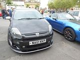 The next surprise, and slight disappointment is how few modern Abarths booked in. The local groups around here are somewhat quiet at present, so whilst the cars are out there, there is no pattern of event attendance to bring the vast numbers of Abarths that you usually get. We did get some, though. The vast majority of these were the 500-based models which have been on sale now since the end of 2008, following a launch at the Paris Show that year. Since that time there have been a number of detailed changes to the standard cars and a lot of limited editions. Those who really know the marque can spot most of them, but some are so subtle that unless there is a badge you can see, you will not be quite sure which version you are looking at. It used to be relatively easy, when the model was first launched, as there was only one version as shipped ex works called the 500. It had a 135 bhp 1.4 litre turbo-charged engine coupled to a five speed manual gearbox, with 16″ alloys as standard, and the option of 17″ wheels, and a colour palette comprising of two whites (BossaNova White, the standard colour, or the pearlescent Funk White), Red (Pasadoble), Pale Grey (Campovolo) or Black. If you wanted more power – 160 bhp – then you could order an Esseesse kit, which came in a large wooden crate, containing new wheels, springs, an ECU upgrade, the Monza exhaust system and badging. It was dealer fitted and could be applied at any time within the first 12 months or 10,000 miles from registration. Needless to say, it proved popular. As were many of the optional extras, with stickers for the sides, a large scorpion for the bonnet and even a chequered pattern for the roof among the personalisation options offered.